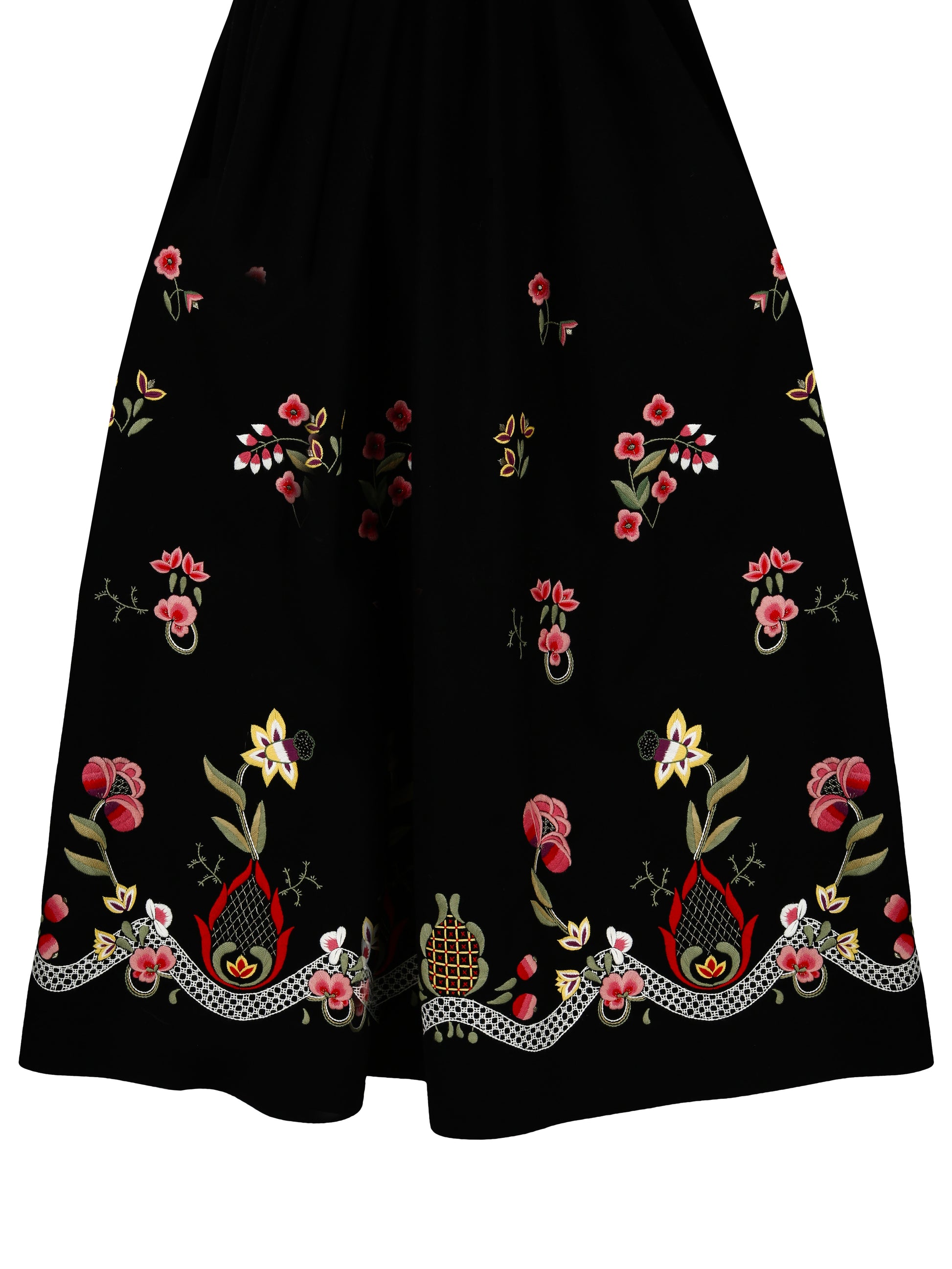- Stakken er i sort klede med brodert blomsterbord langs stakkekanten.