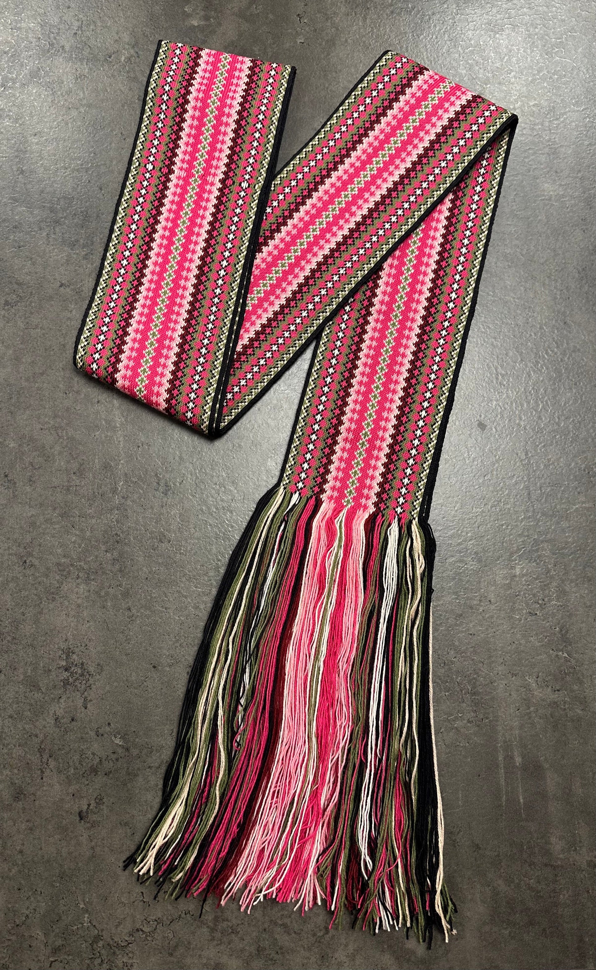 Flott bredt brikkevevet beltestakkbelte. Dette er håndvevet etter gamle tradisjoner akkurat som ekte beltestakk fra Telemark.