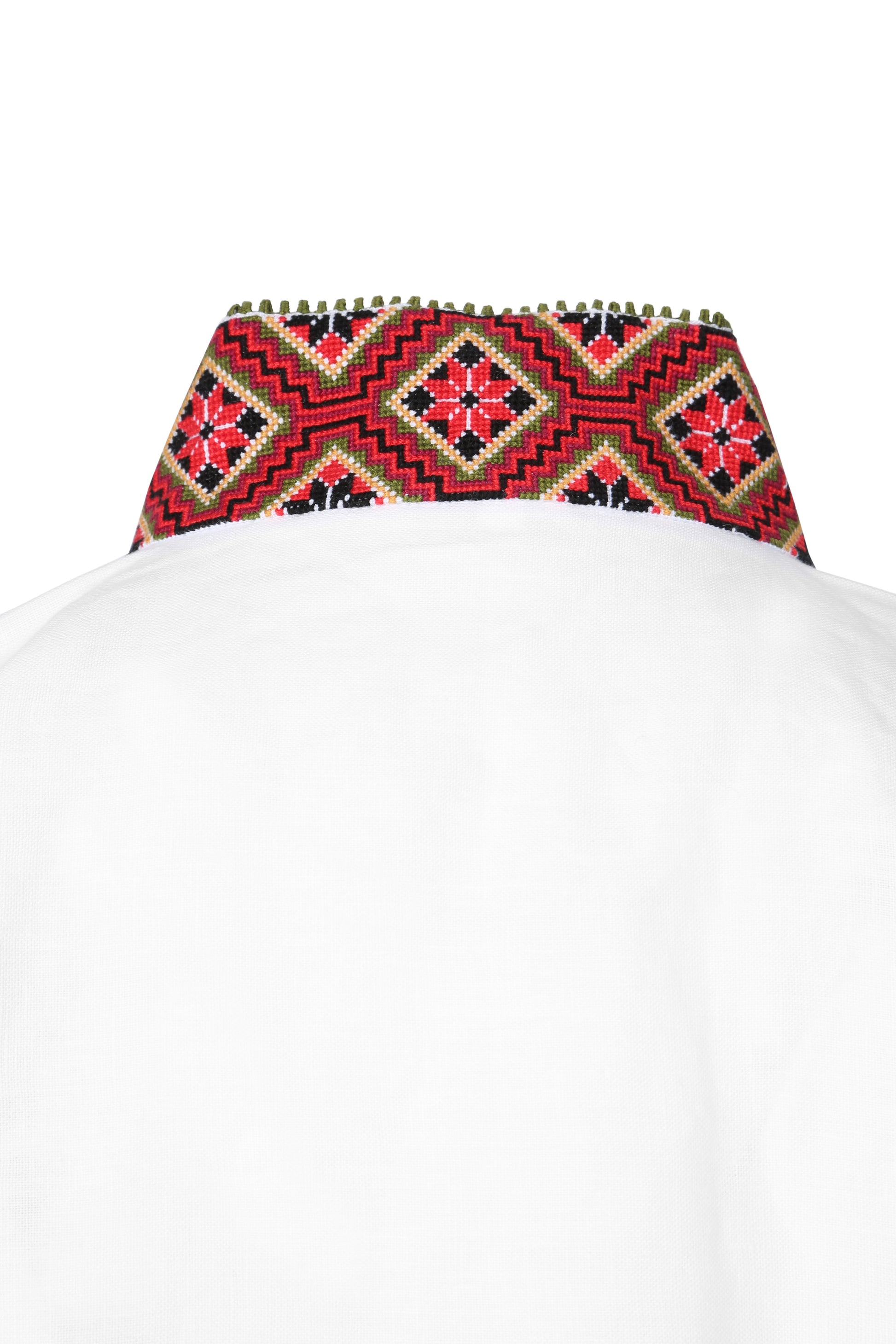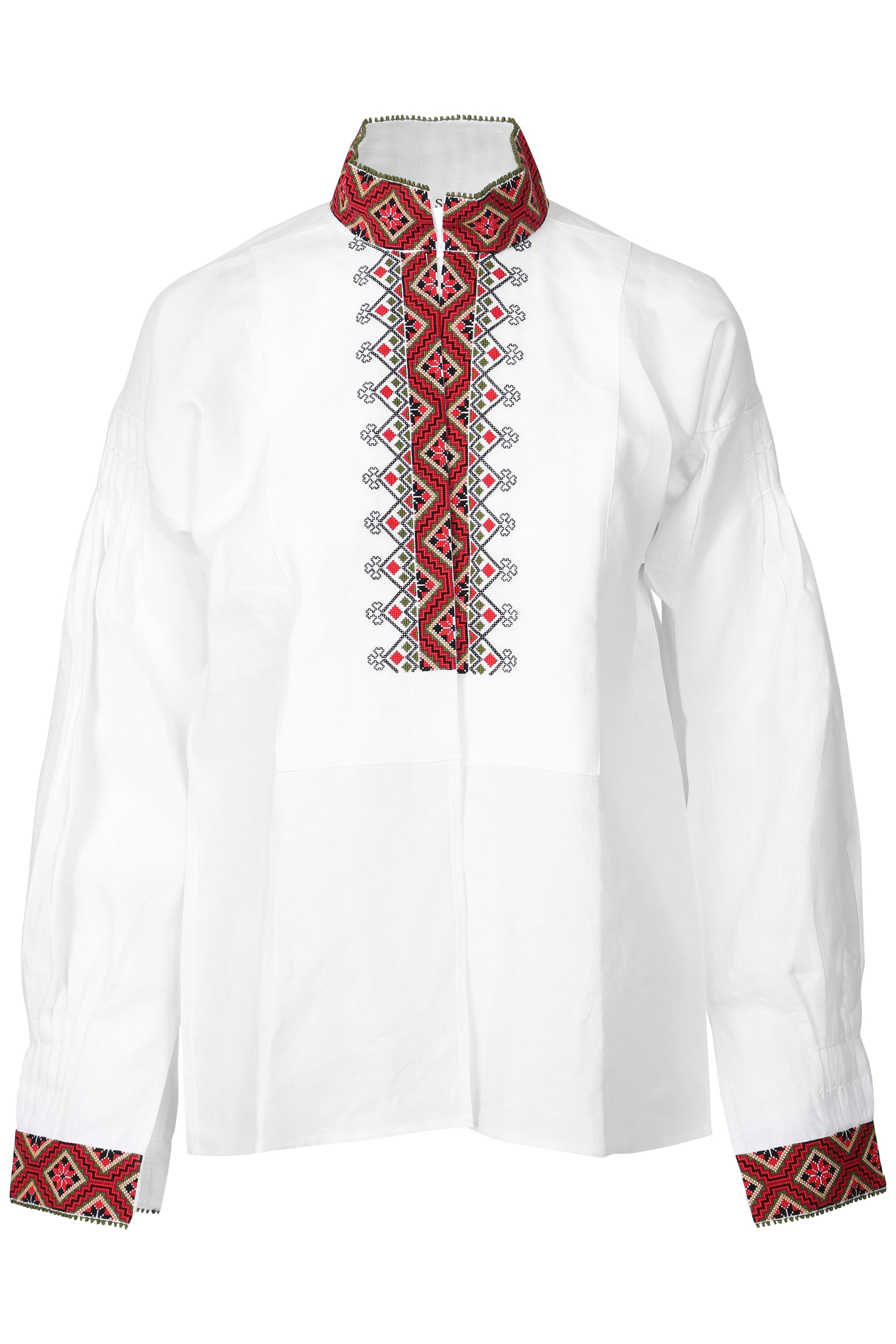 Bunadskjorten er i lin med korssting broderier i vakre fargekombinasjoner.
