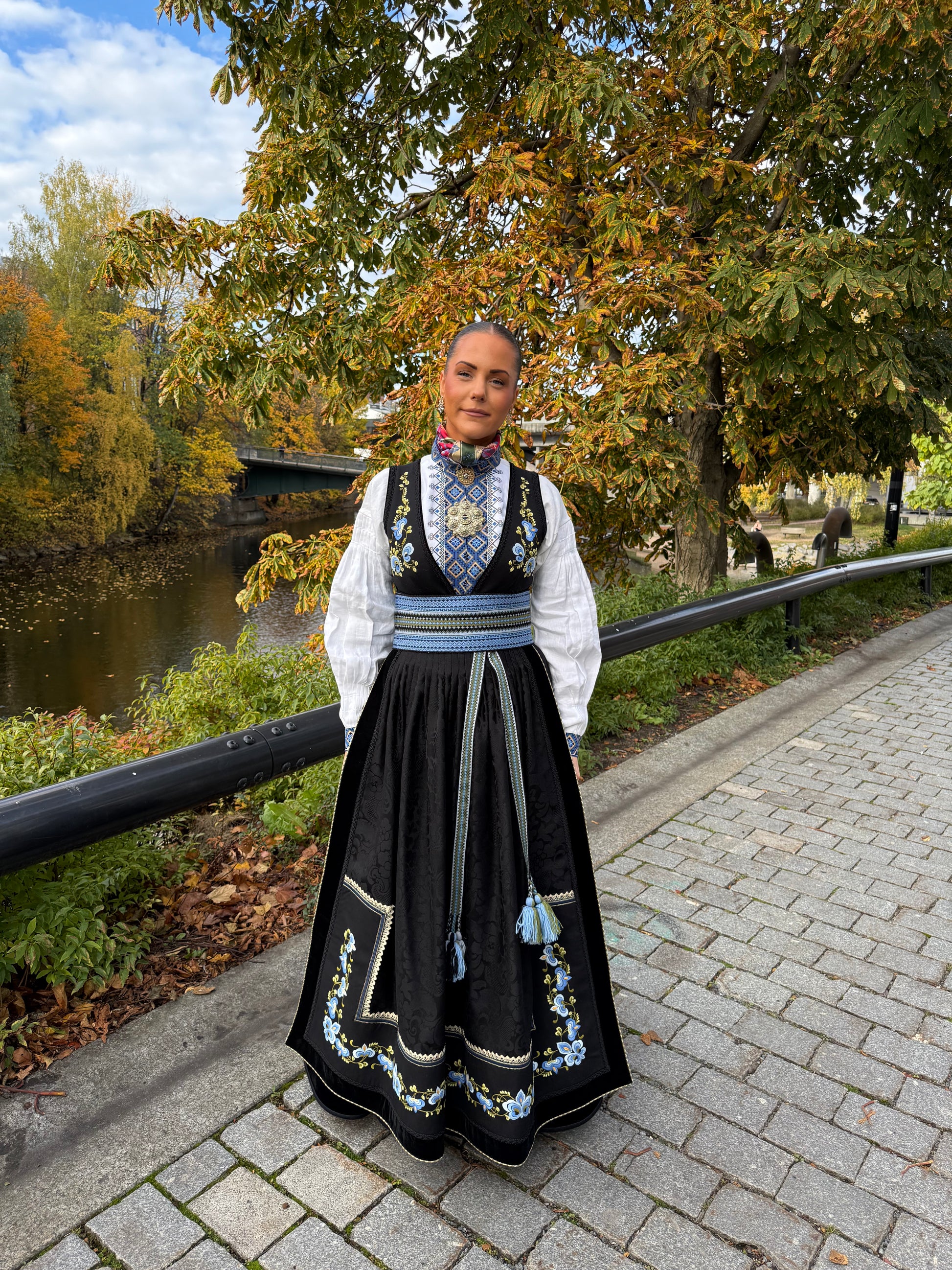 Broderiene er brodert for hånd. Oppgi din høyde og brystmål i kommentarfeltet.