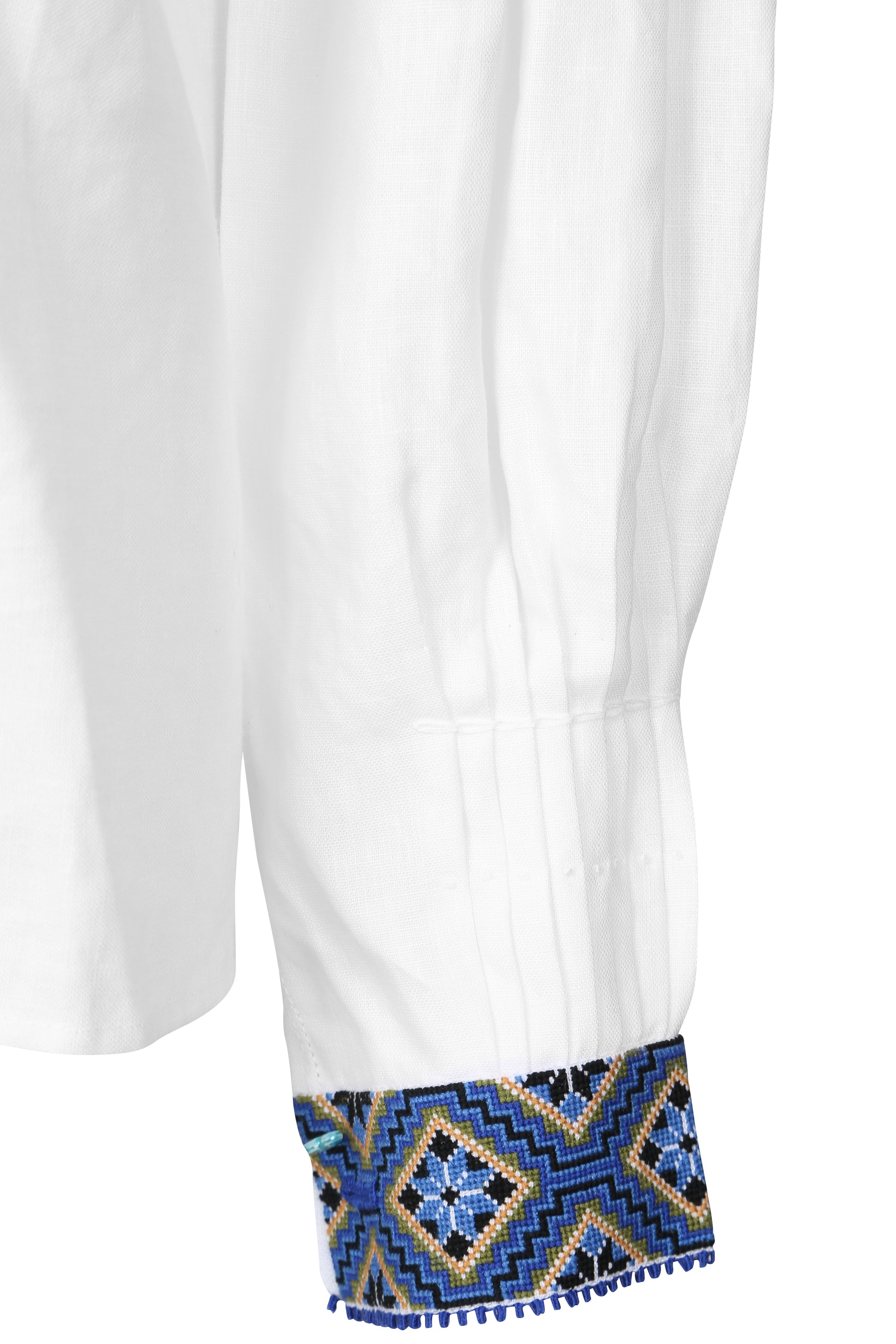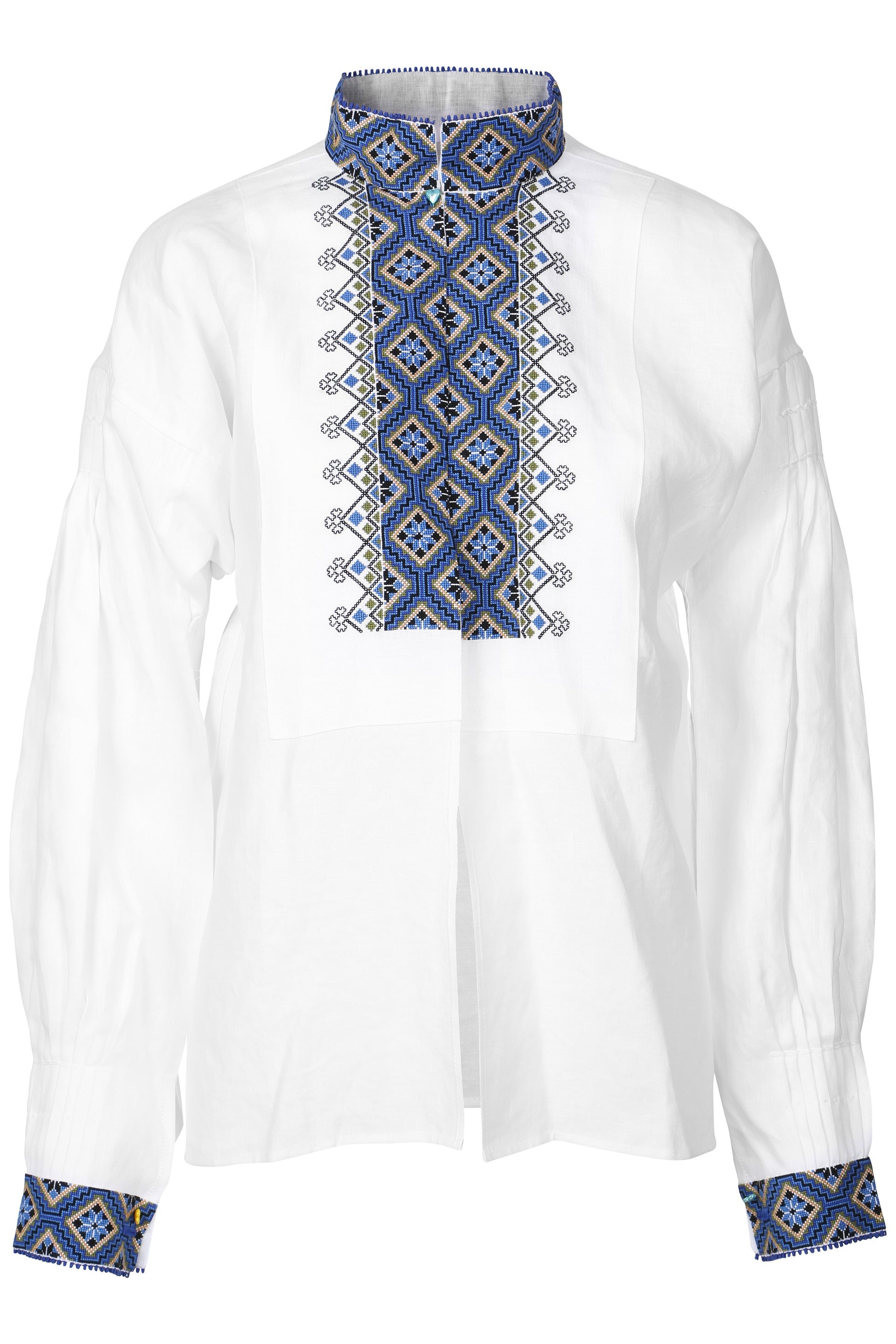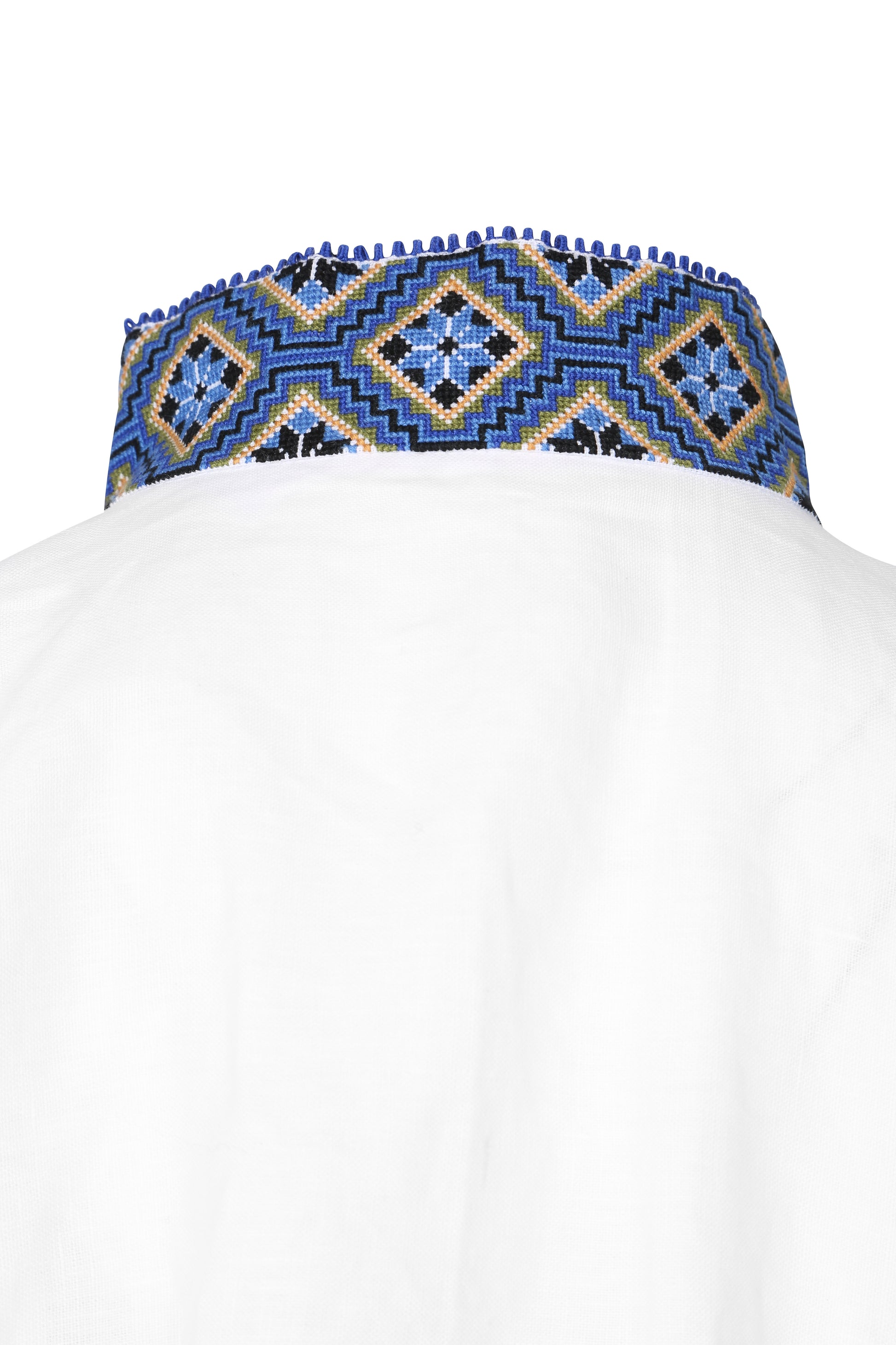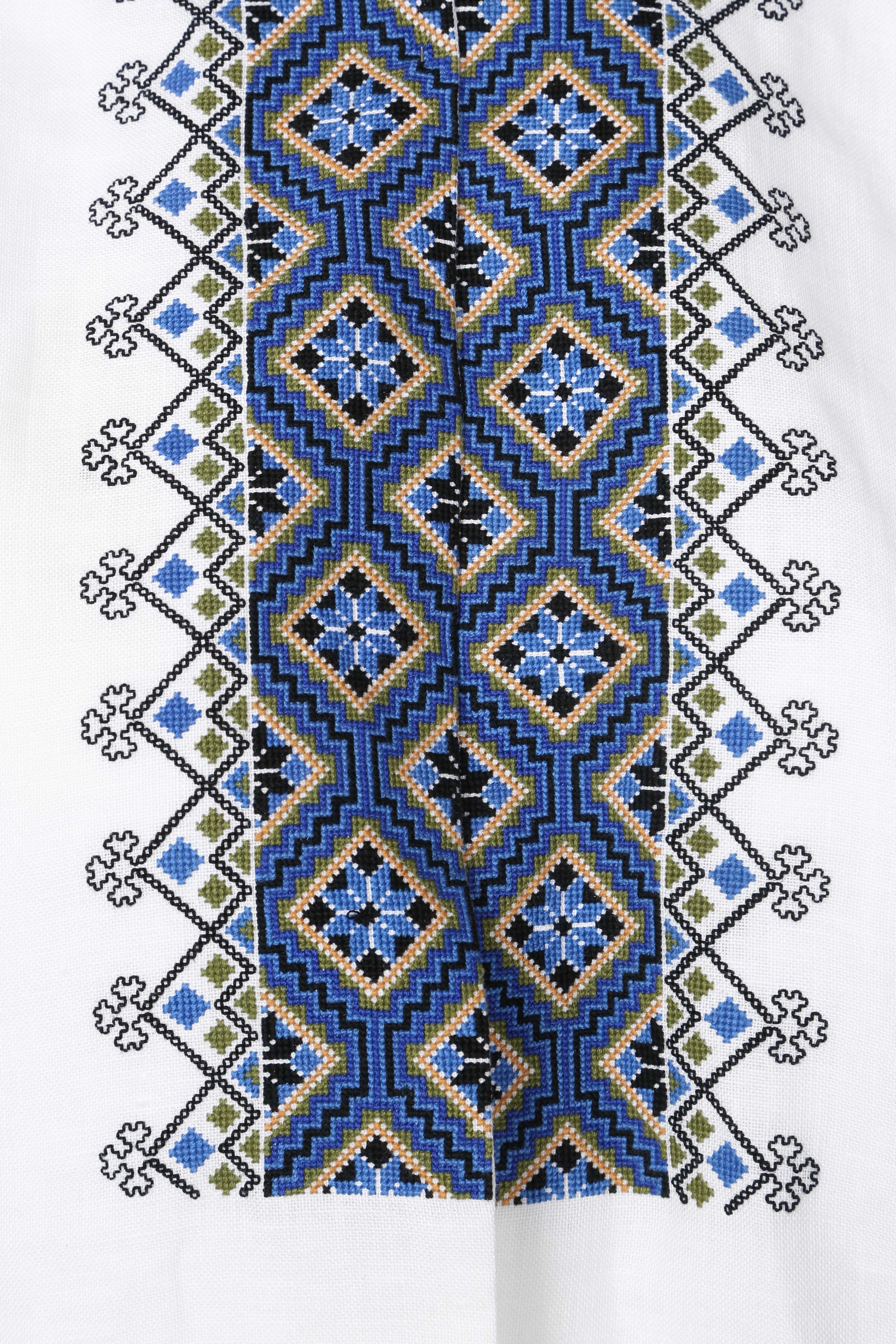 Bunadskjorten er i lin med korssting broderier i vakre fargekombinasjoner. Denne skjorten har dobbelt så mye broderier foran.