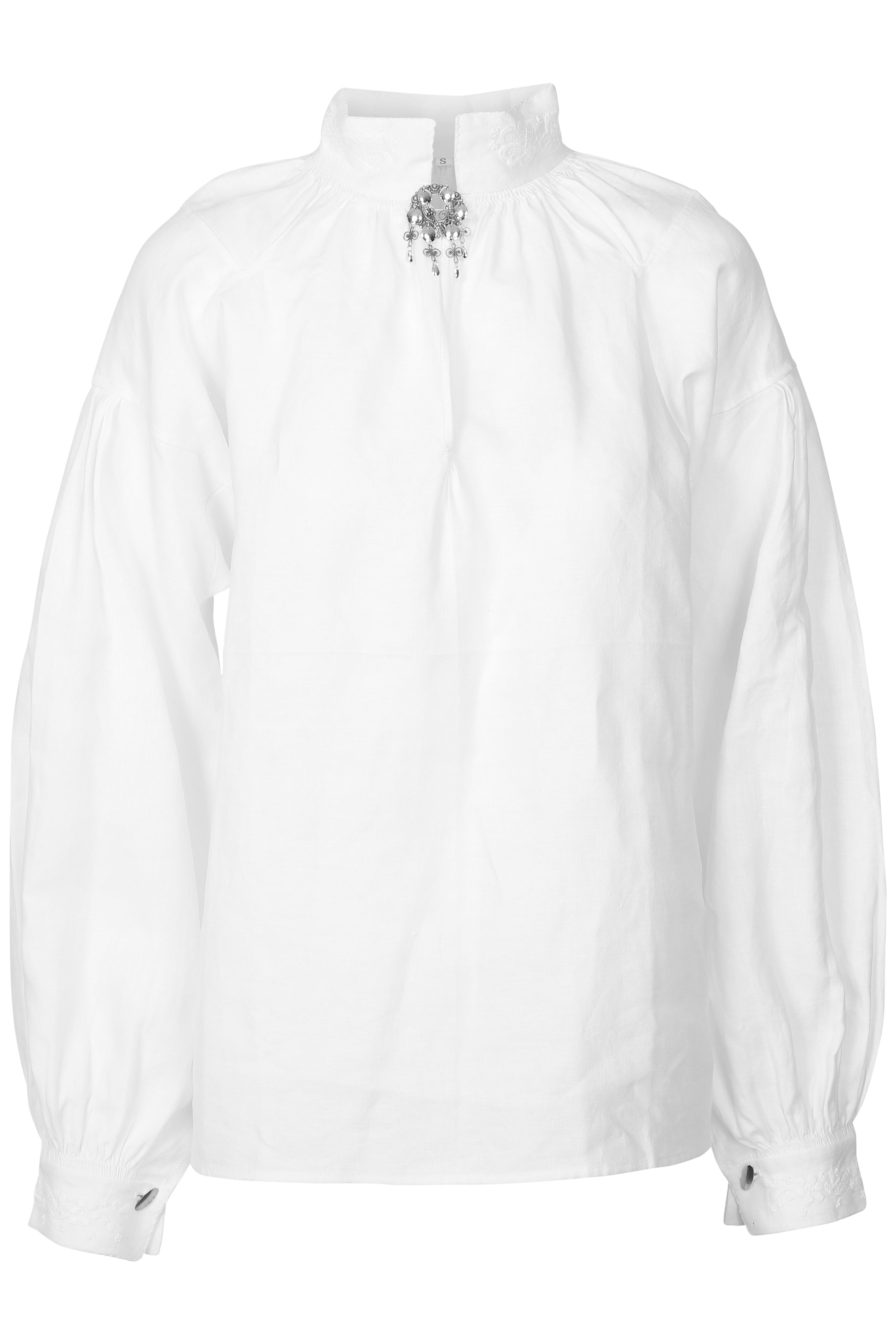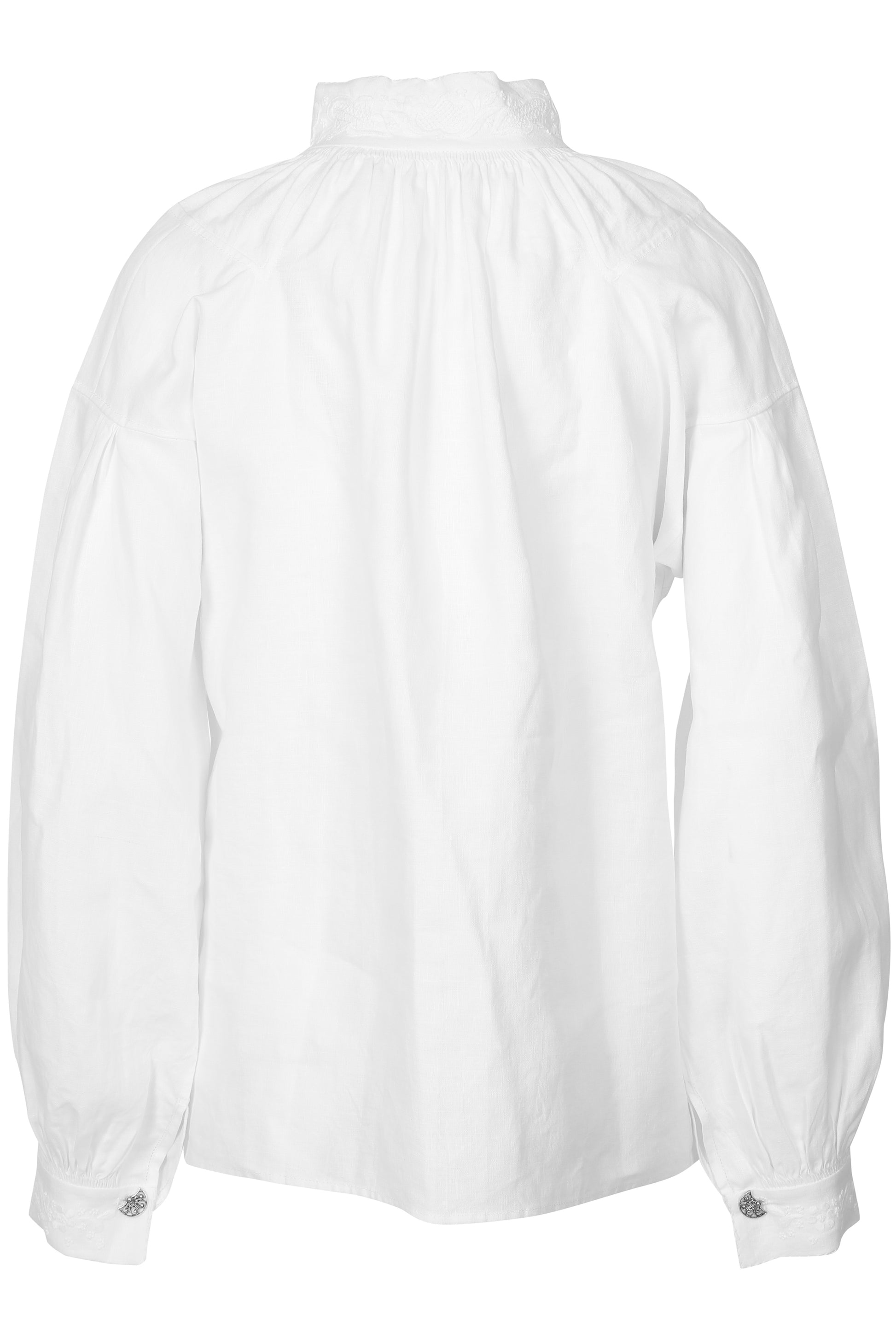 Bunadskjorten er i lin med broderier i hvitsøm.