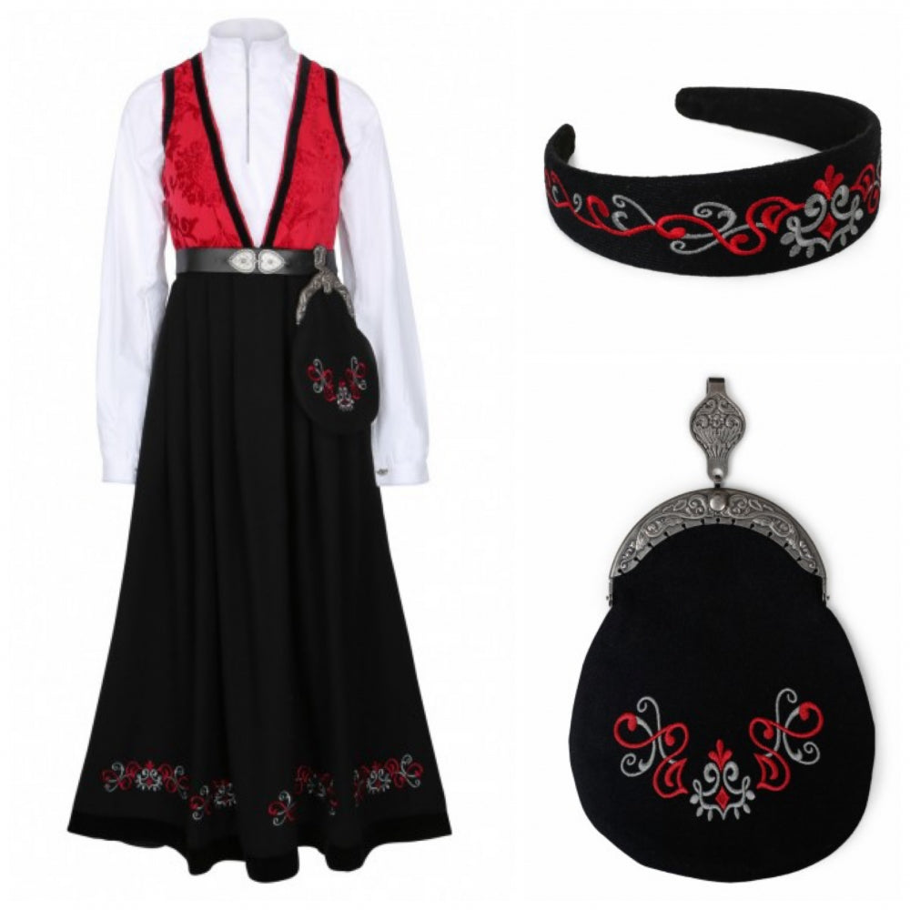 Rød Pascal festdrakt med bunadsveske og hårbøyle