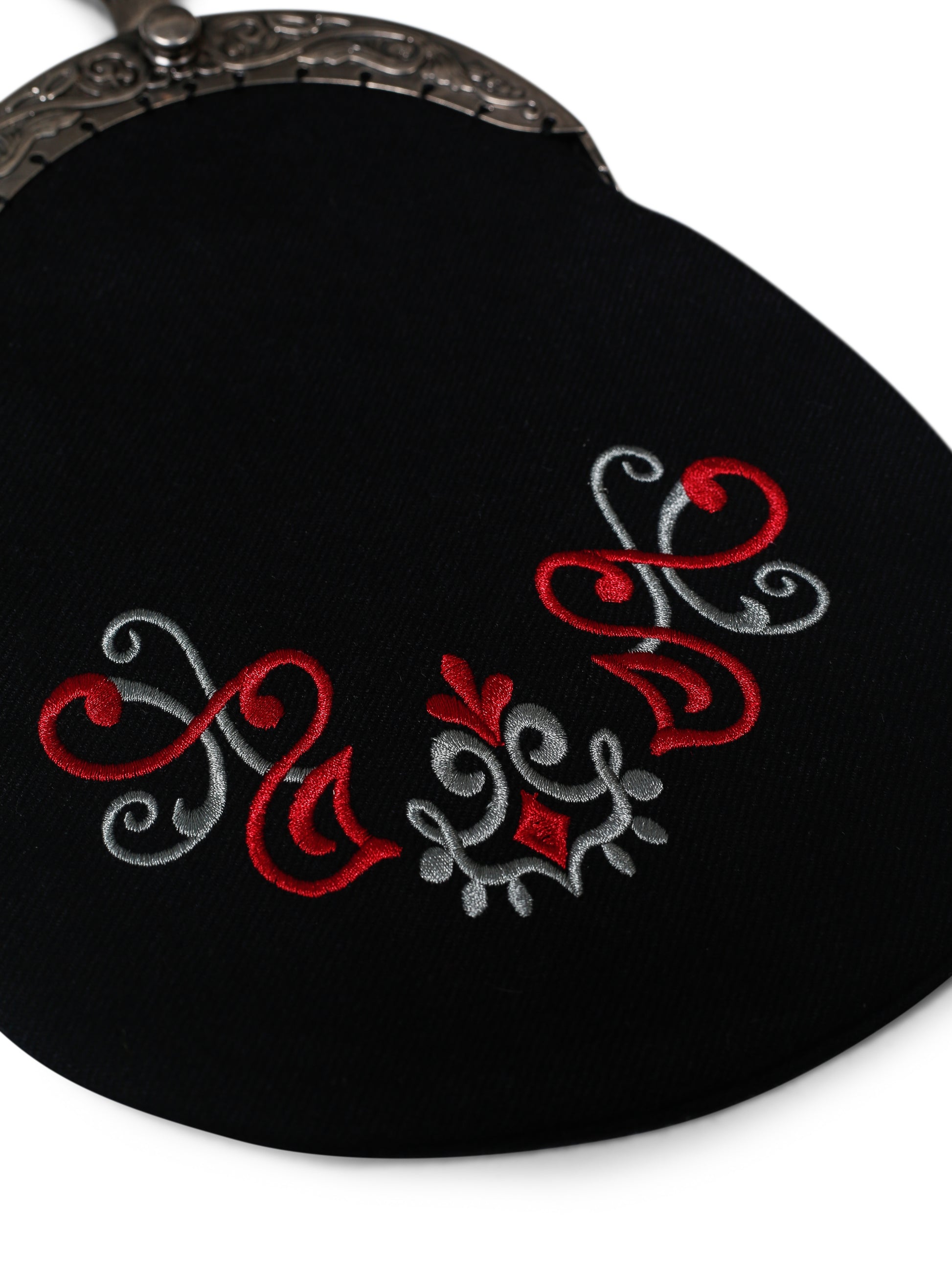 Bunadsbroderingen på stakken er ikke bare foran men rundt hele. Svart velourkant nederst.