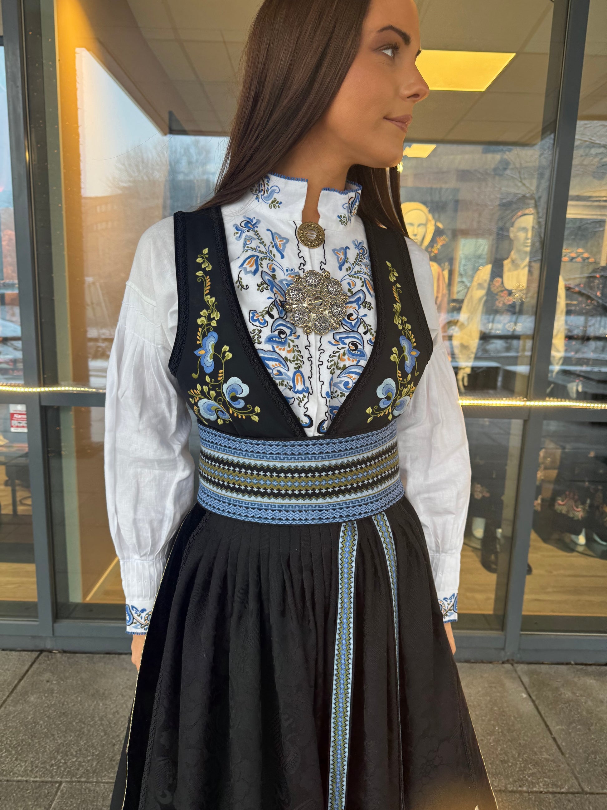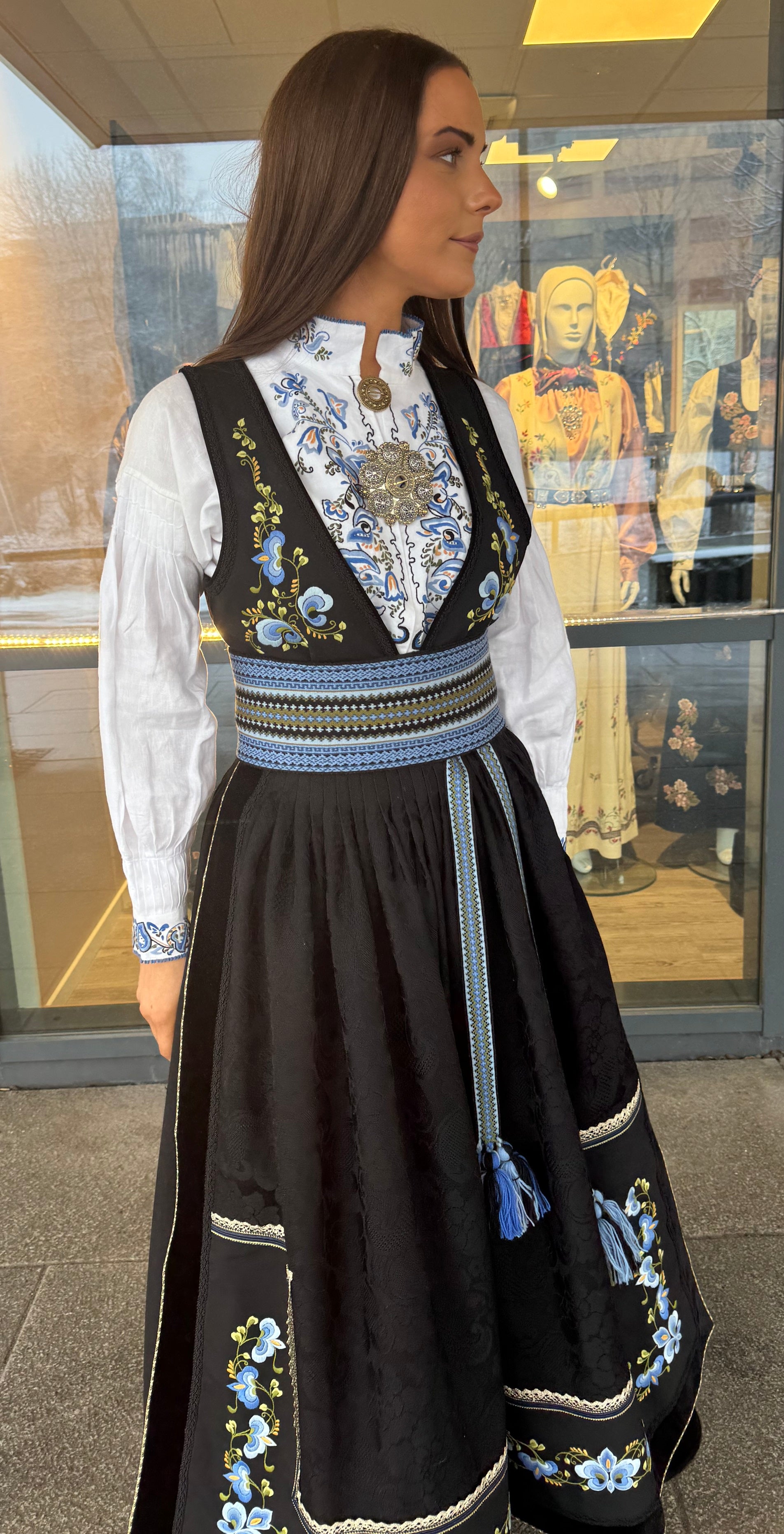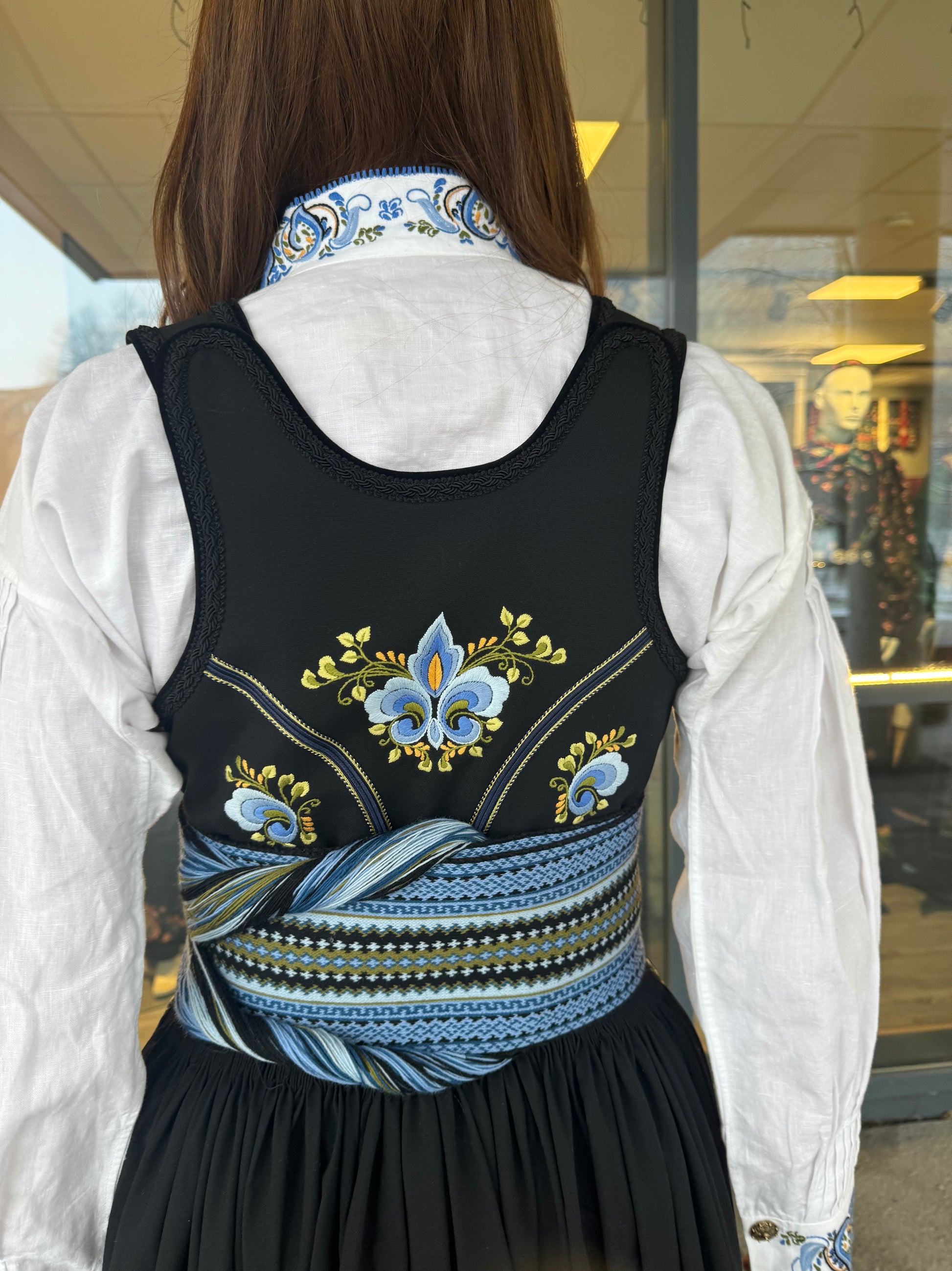 Beltestakken monteres i Norge. Den blir skreddersydd til dine mål. For å garantere at du blir fornøyd med passformen så tilbyr vi en gratis justering av bunaden innen 6 mnd fra kjøpsdato.