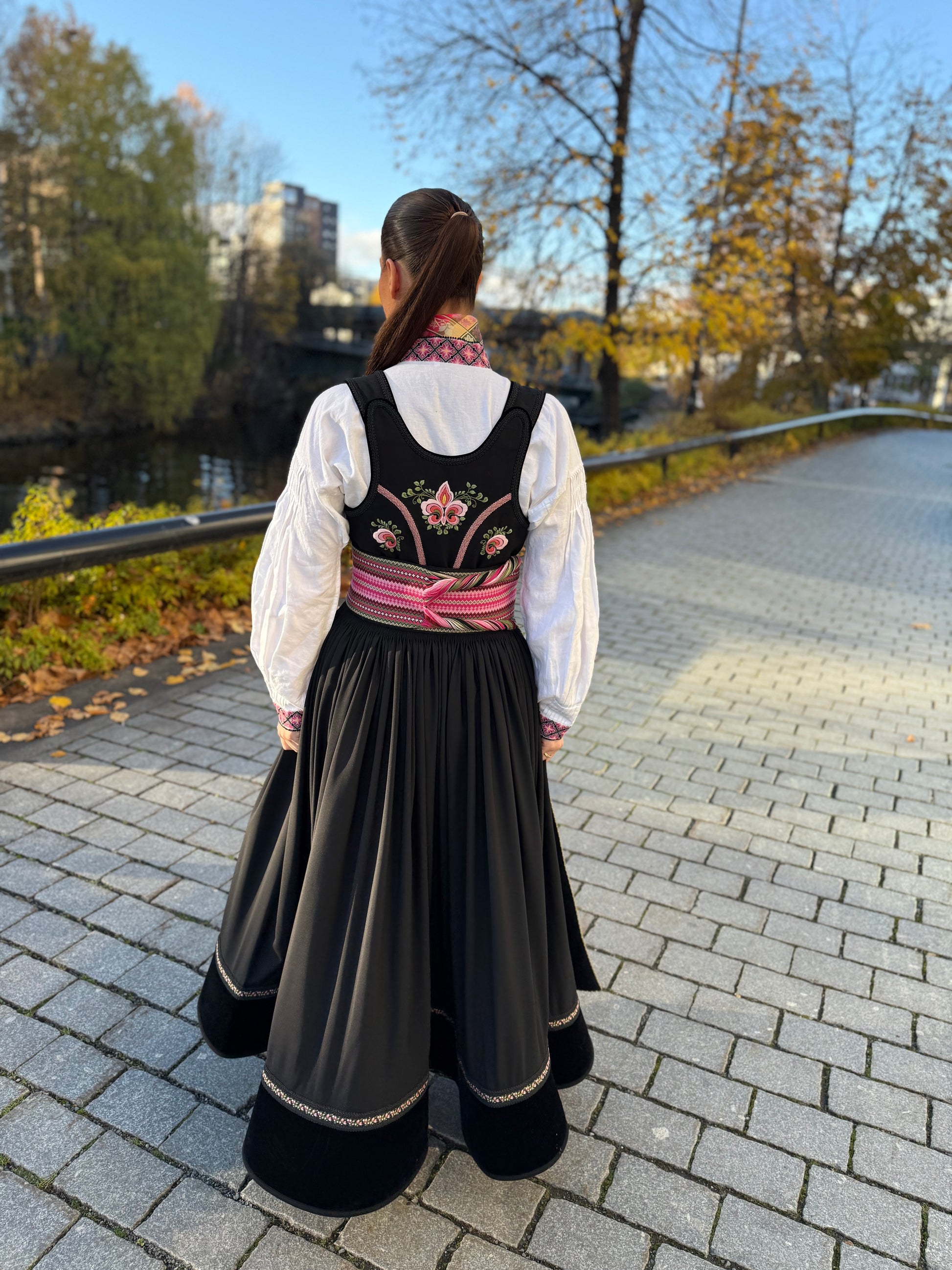 Beltestakken monteres i Norge. Den blir skreddersydd til dine mål. For å garantere at du blir fornøyd med passformen så tilbyr vi en gratis justering av bunaden innen 6 mnd fra kjøpsdato.