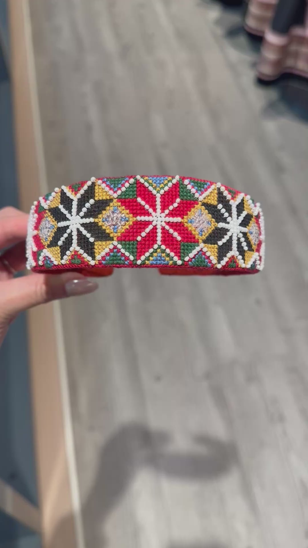 Hårbøylen er håndbrodert med perler på hele bøylen.