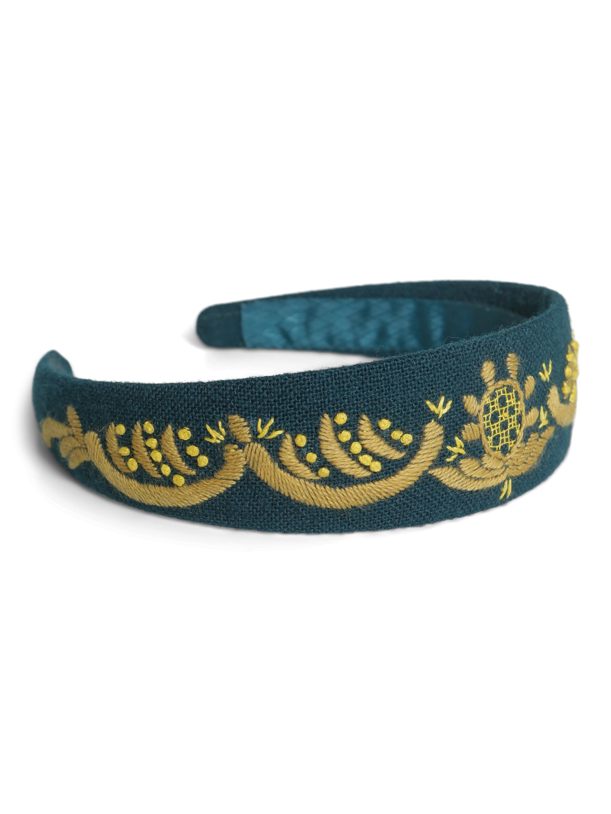 Hårbøylen er håndbrodert. Farge: Blågrønn
