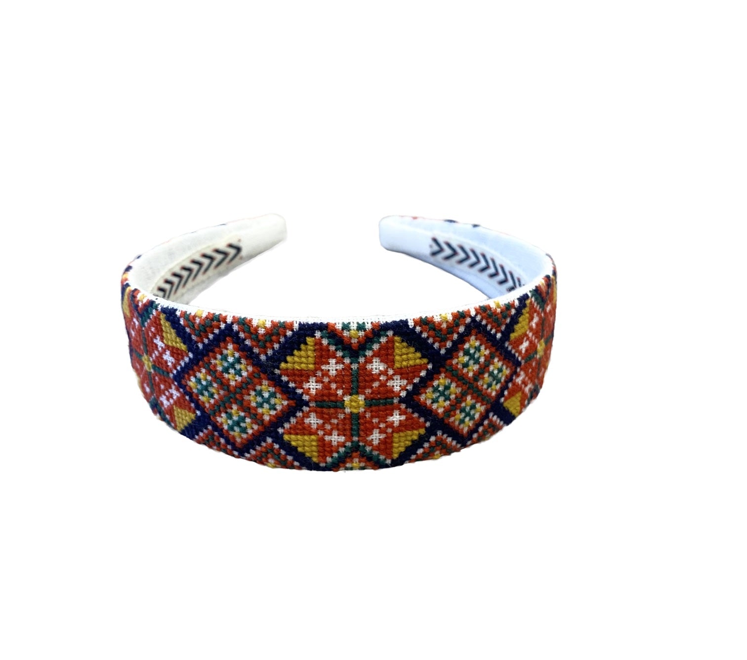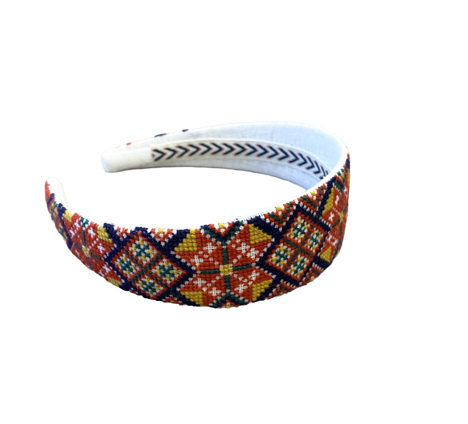Hårbøylen er håndbrodert med korssting på hele bøylen.