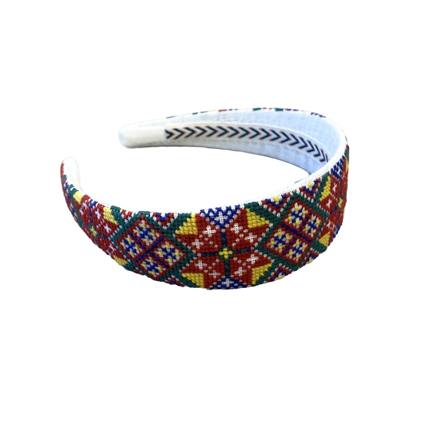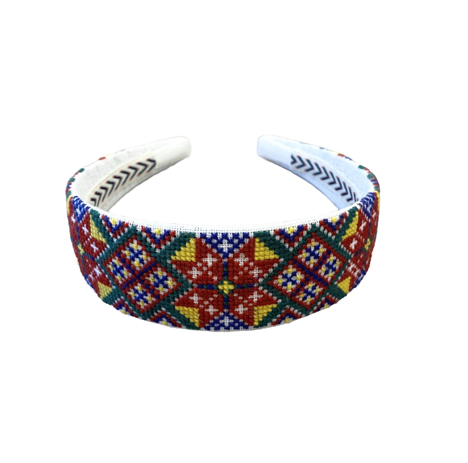 Hårbøylen er håndbrodert med korssting på hele bøylen.