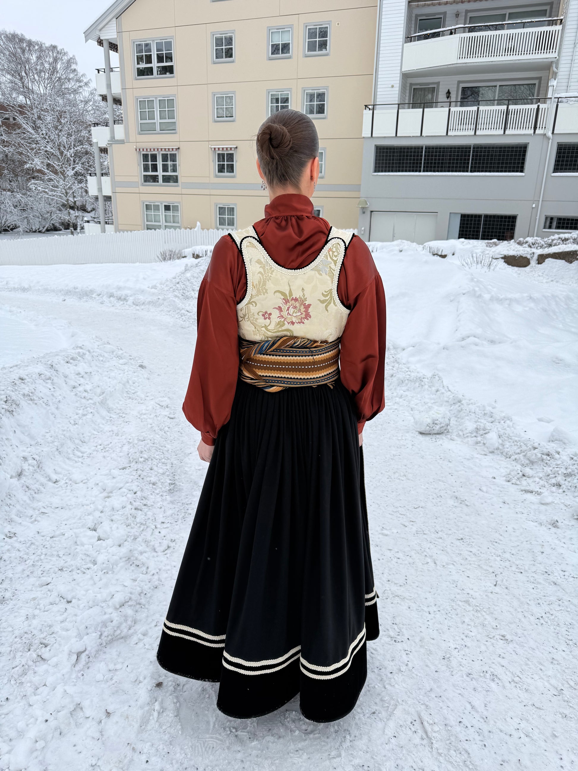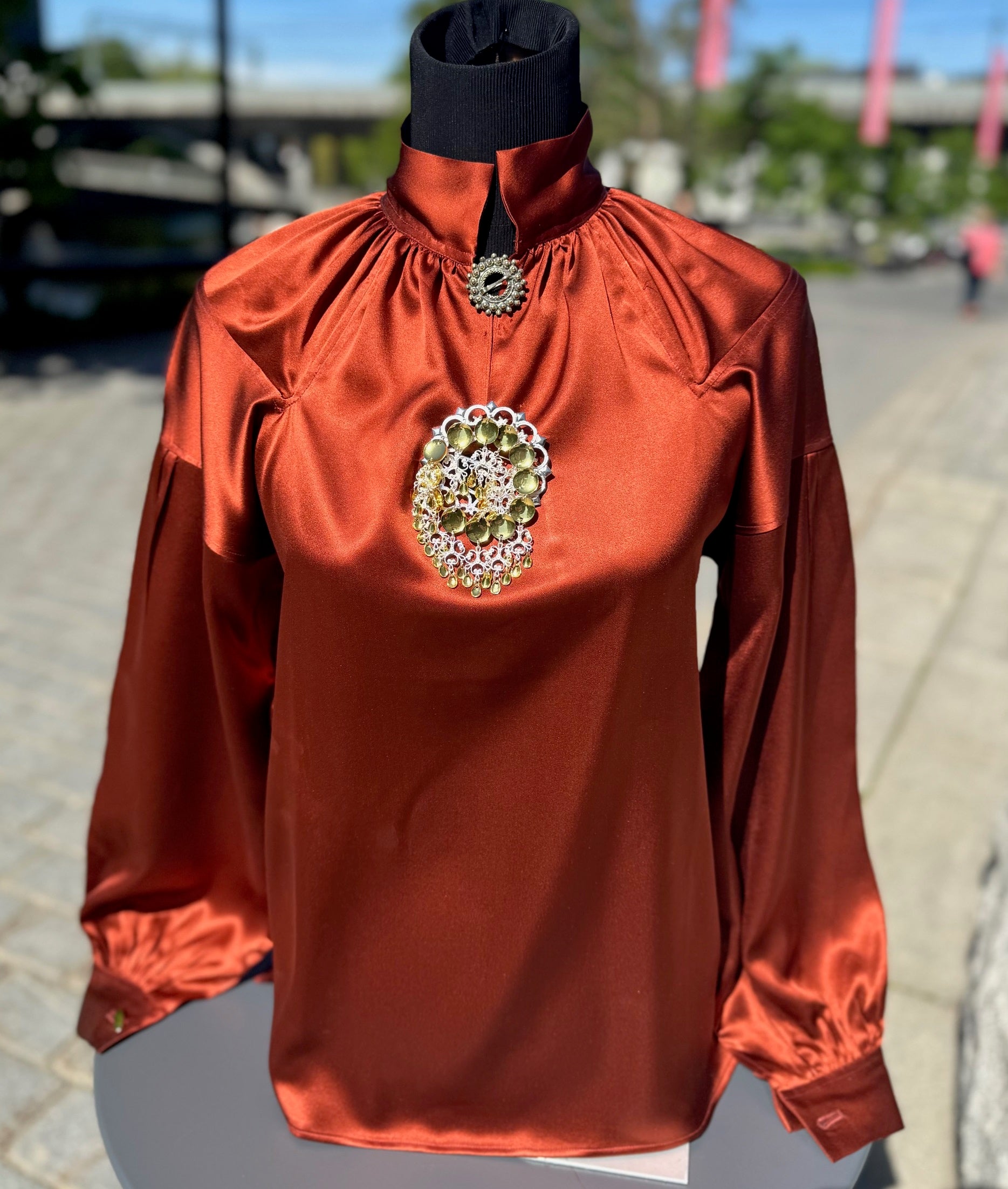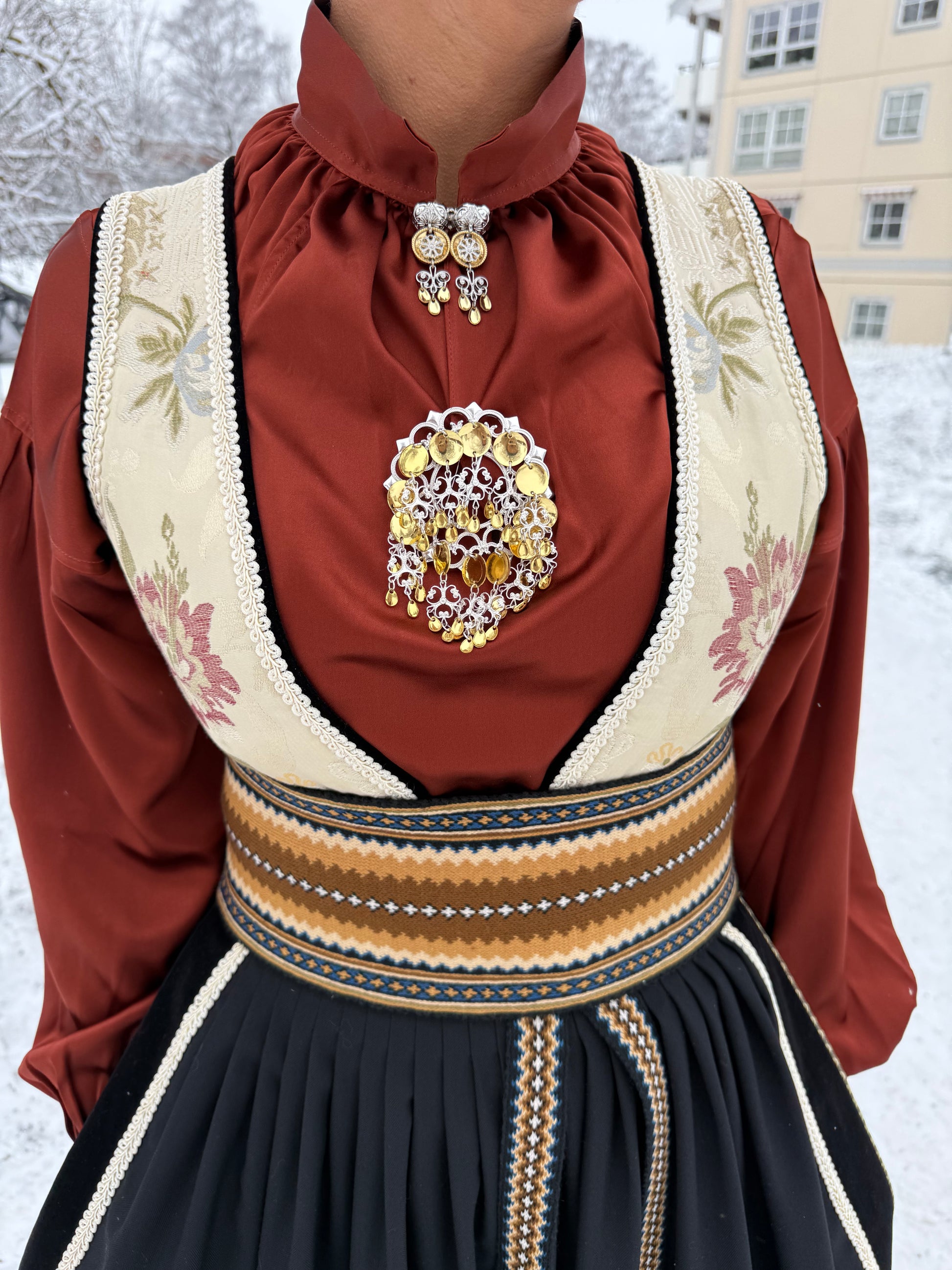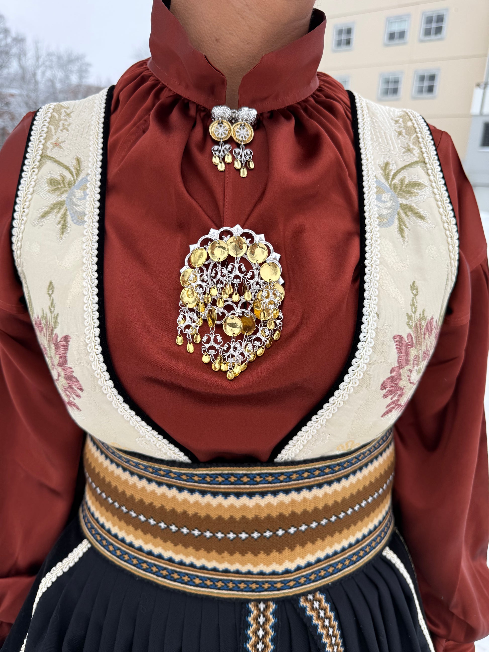 Brystvidden på skjorten skal være større en brystmålet på kroppen. Vi plusser på 15 cm (bevegelsesvidde) Hvis du f.eks har brystmål (omkrets) på 85 cm så skal du ha str. 34/36. Da er brystvidden på skjorten 104 cm. Ring oss hvis du har spørsmål rundt dette. (Halssølje og mansjettknapper følger ikke med)