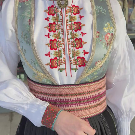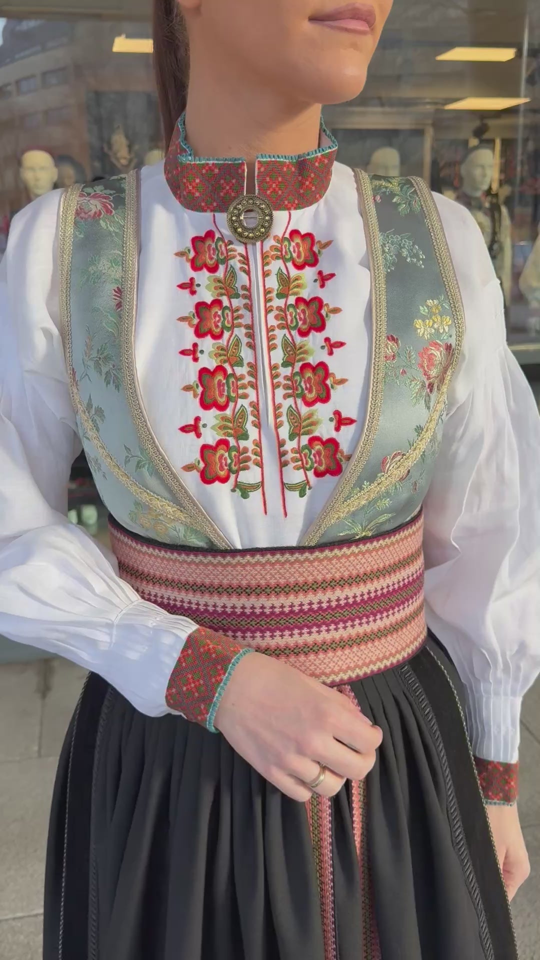 Broderiene er brodert for hånd. Oppgi din høyde og brystmål i kommentarfeltet.