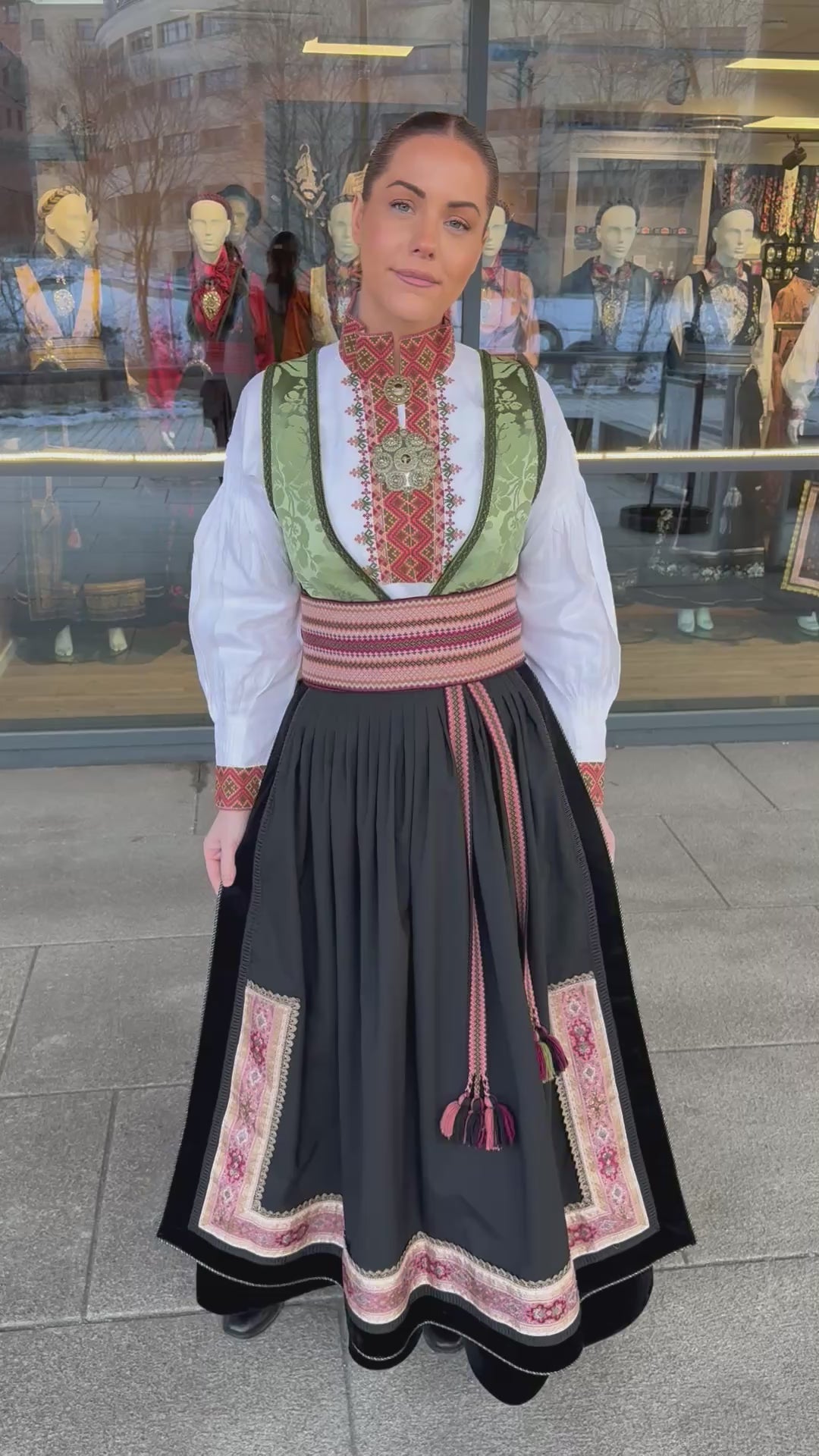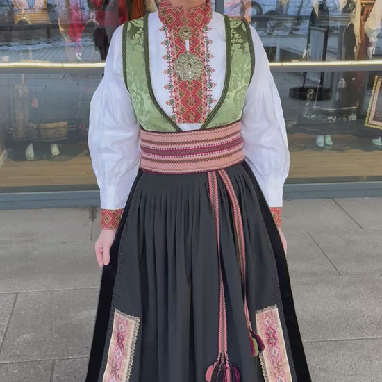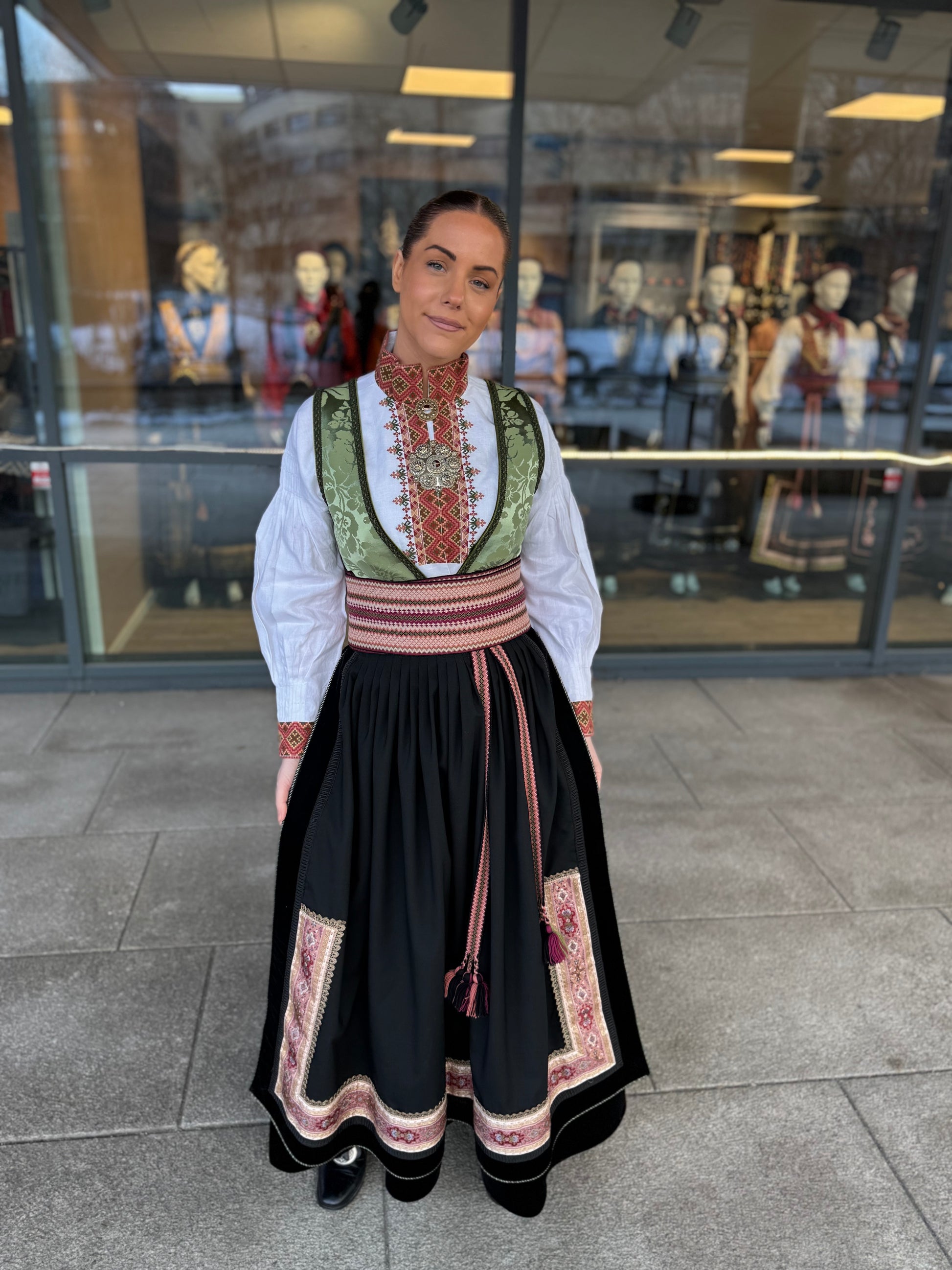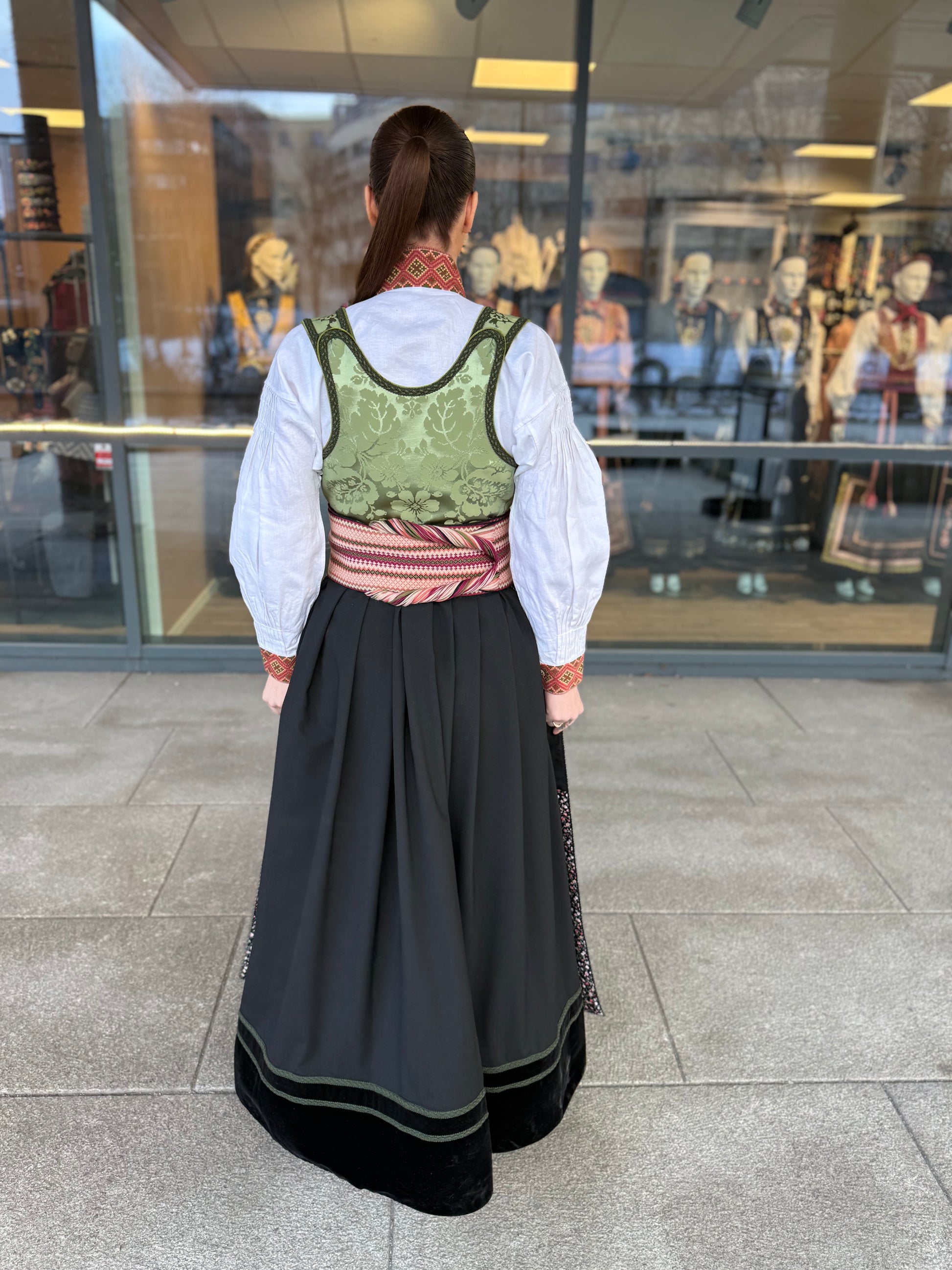Bunadskjorten er i lin med korssting broderier i vakre fargekombinasjoner.