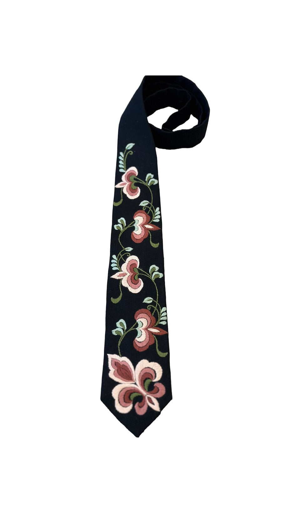 Nydelig håndbrodert bunadslips i ull. Broderiene er håndbrodert med mønster fra beltestakken.