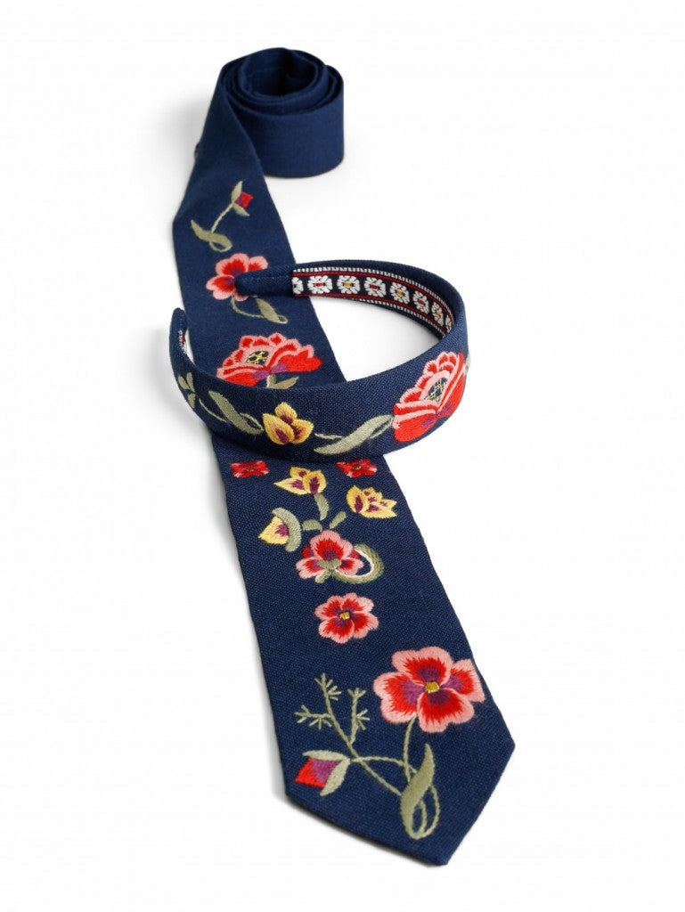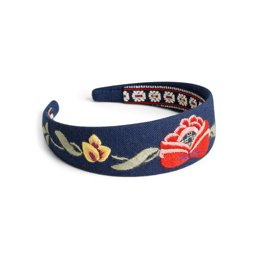 Blå hårbøyle til Grafferbunad. Håndbrodert i ullstoff.