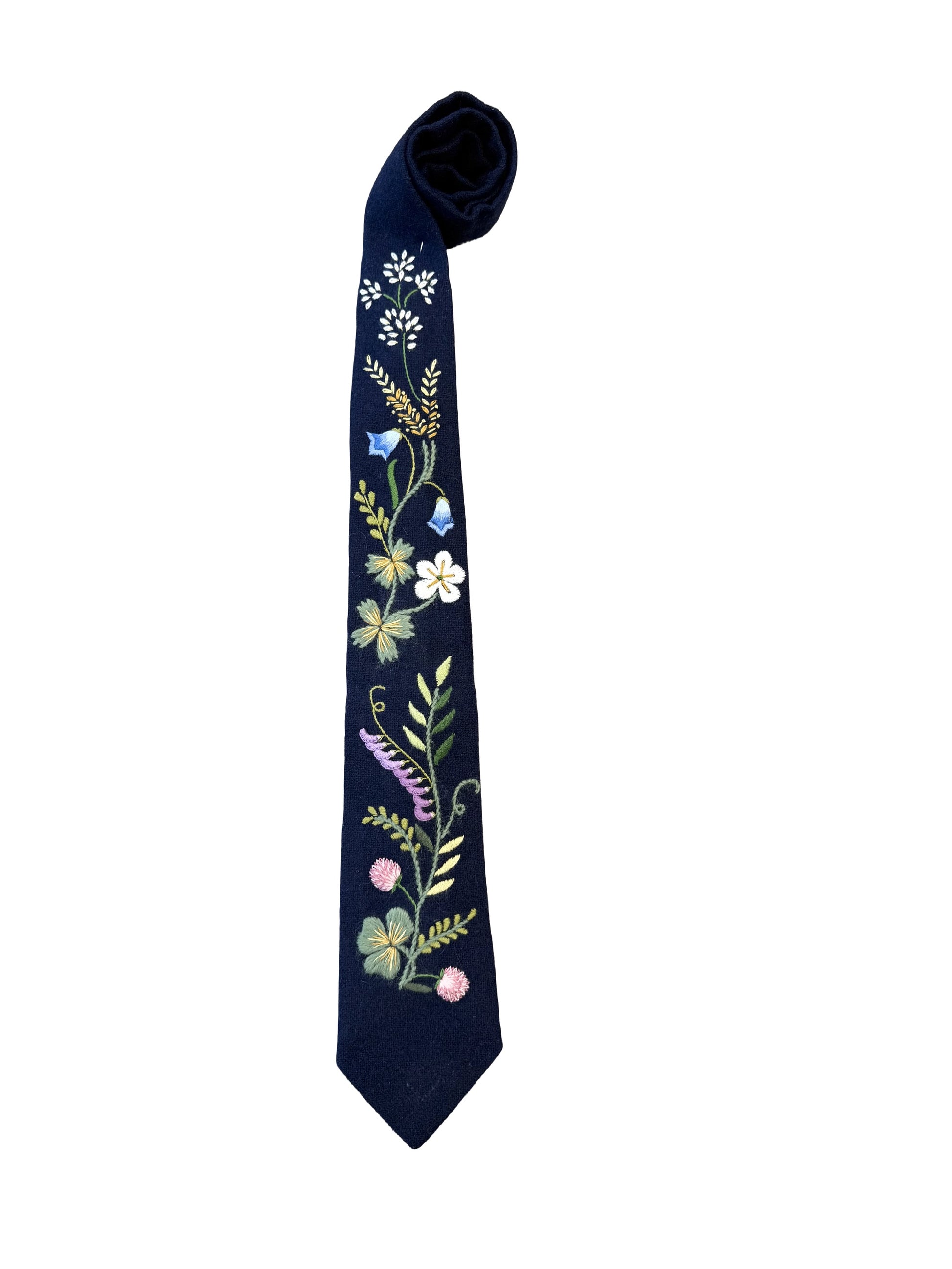Nydelig håndbrodert bunadslips i ull. Broderiene er håndbrodert med mønster fra Oslobunaden . Farge: Mørkeblå