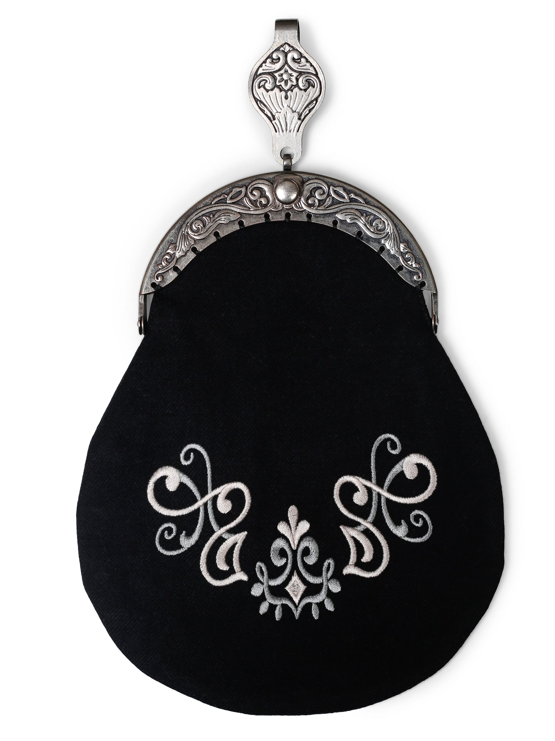 Nydelig sølvgrå festdrakt / bunad med bunadsveske og komplett beltestøl til damer fra norske Pascal.