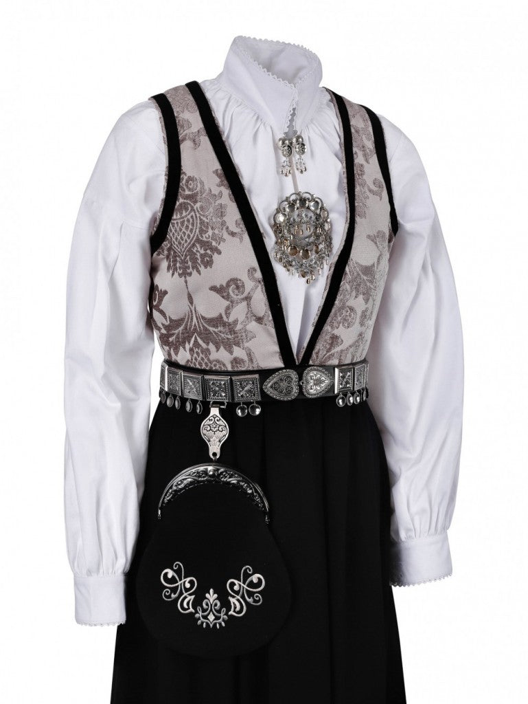 Bunadsveske som matcher festdrakten er inkludert. Se video av hvordan du fester bunadsvesken her : https://www.youtube.com/shorts/X2zloCs64TY