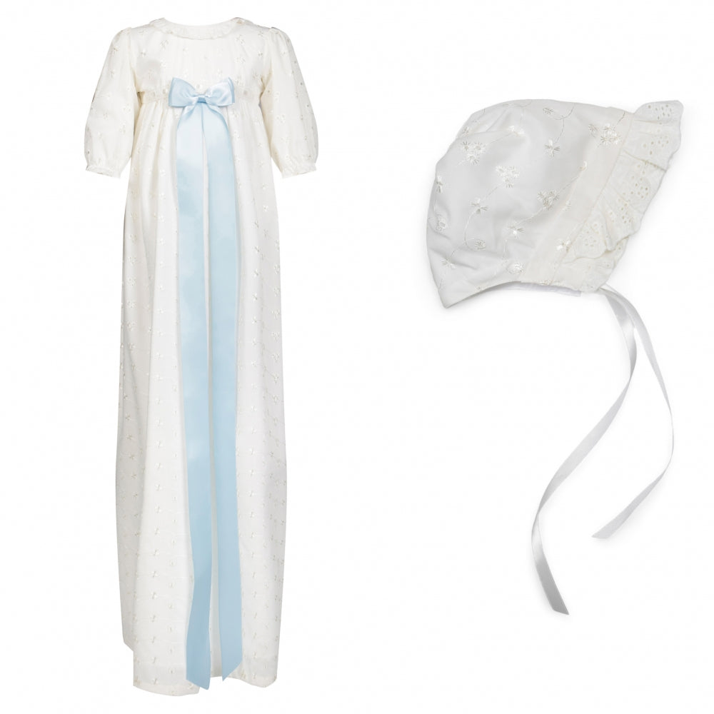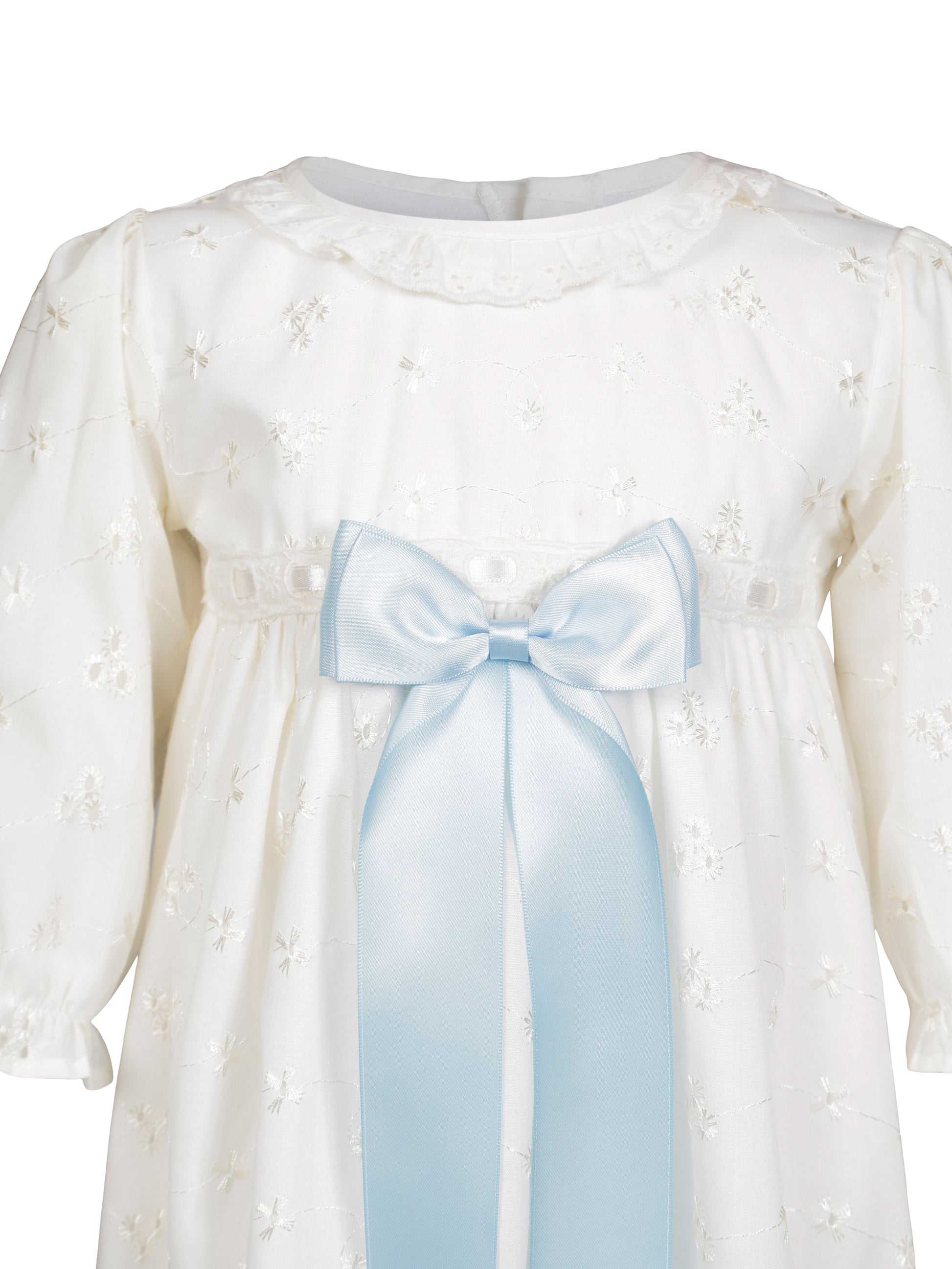 Pascal dåpskjole i engelsk blonde med lyseblått bånd OFFWHITE