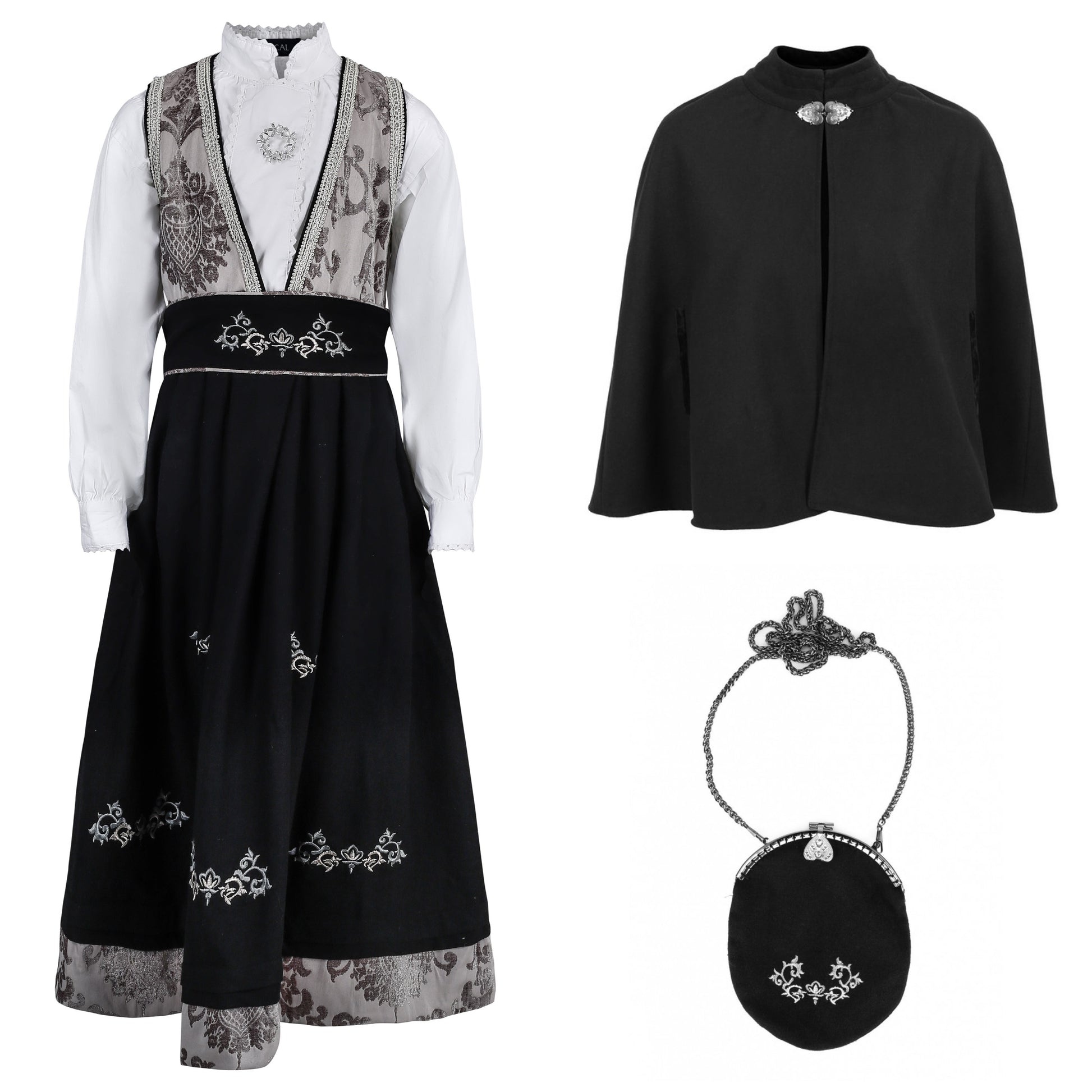 Pascal festdrakt med bunadsveske og cape grå