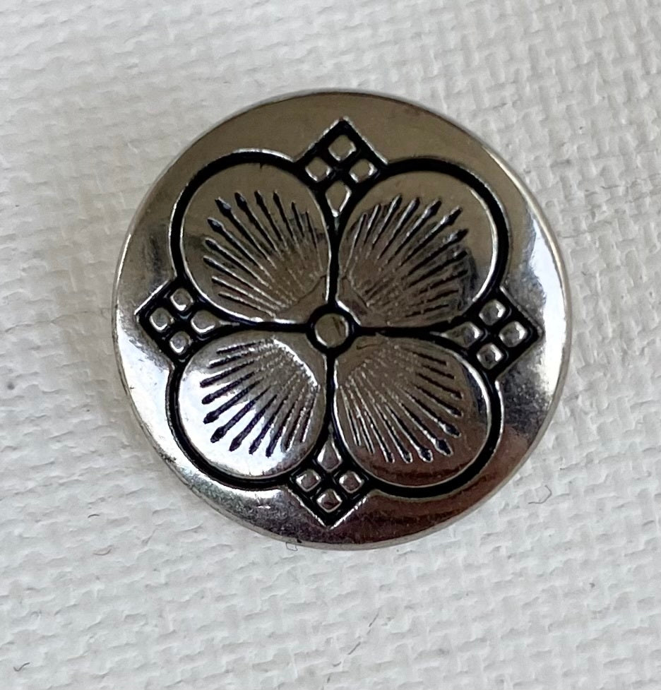 Firkløverknappen har forsølvet rhodinert overflate. Fint alternativ til de som ikke ønsker å investere i ekte sølv. Trenger heller ikke pusses da det ikke er ekte sølv.