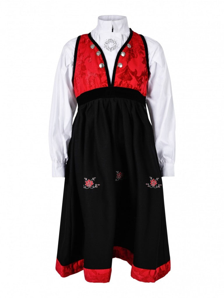 Nydelig rød festdrakt / bunad til jenter fra norske Pascal. Inkludert hvit bunadsskjorte.