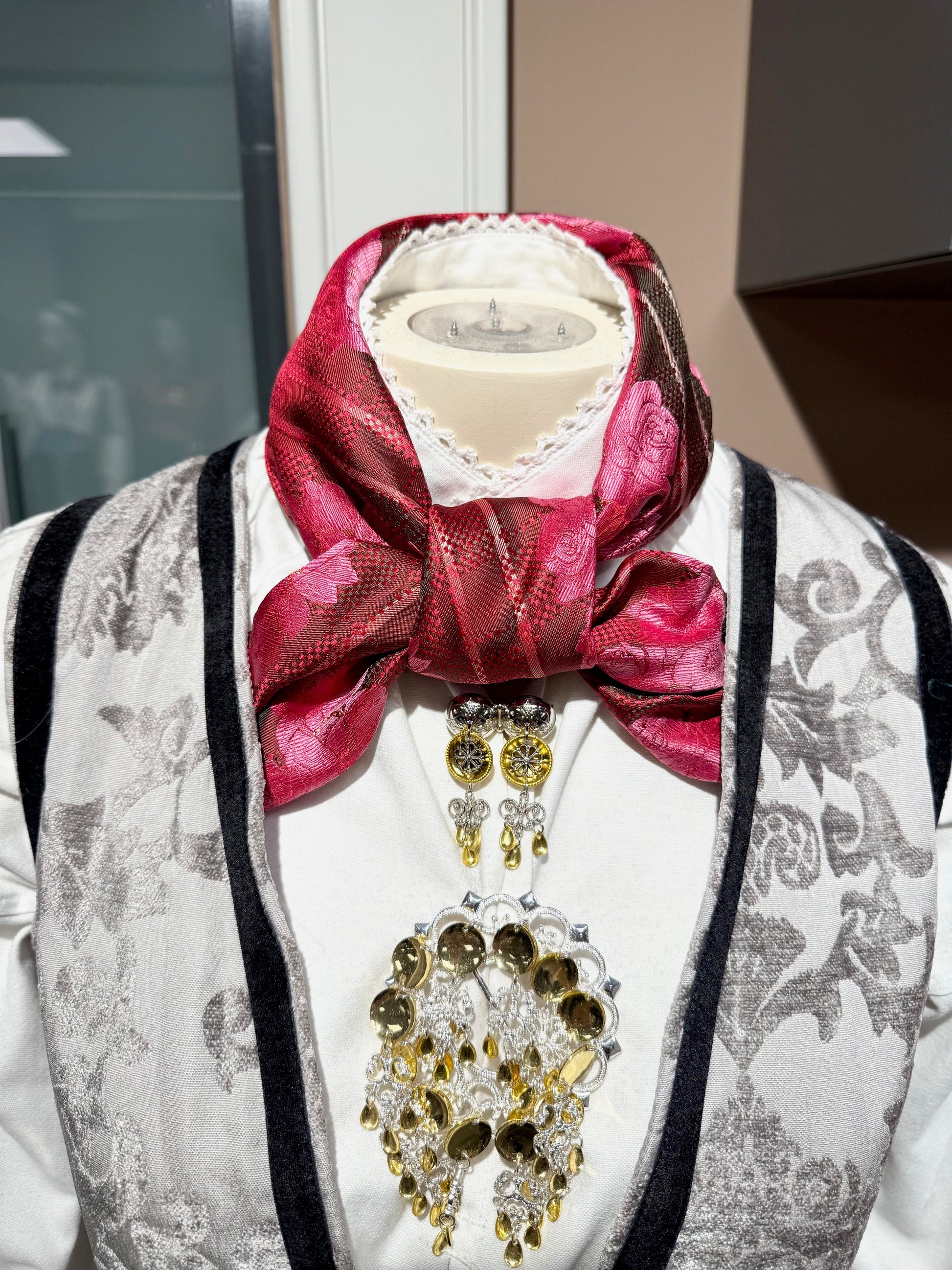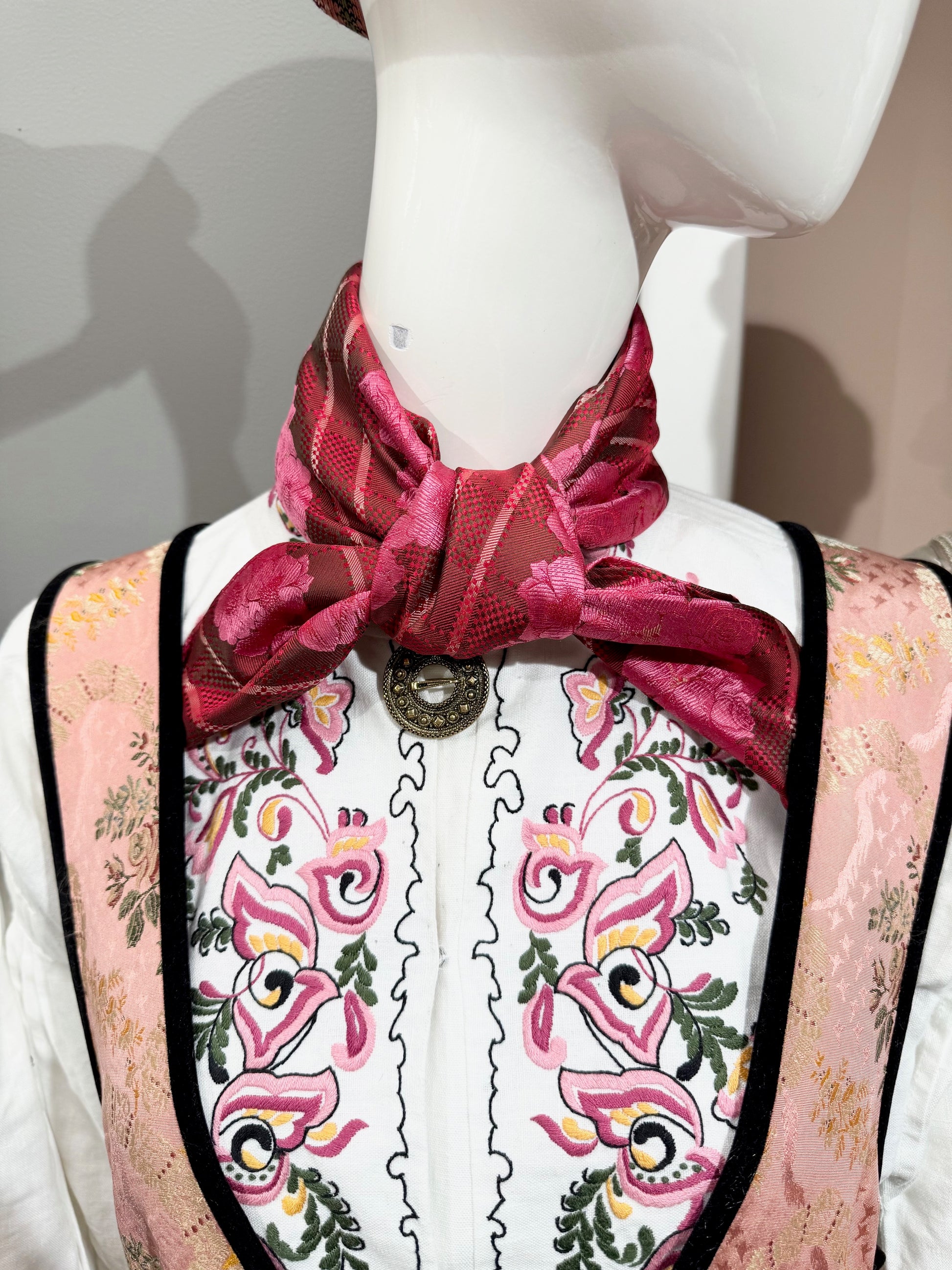 Silkeskjerf til festdrakter og bunader rosa