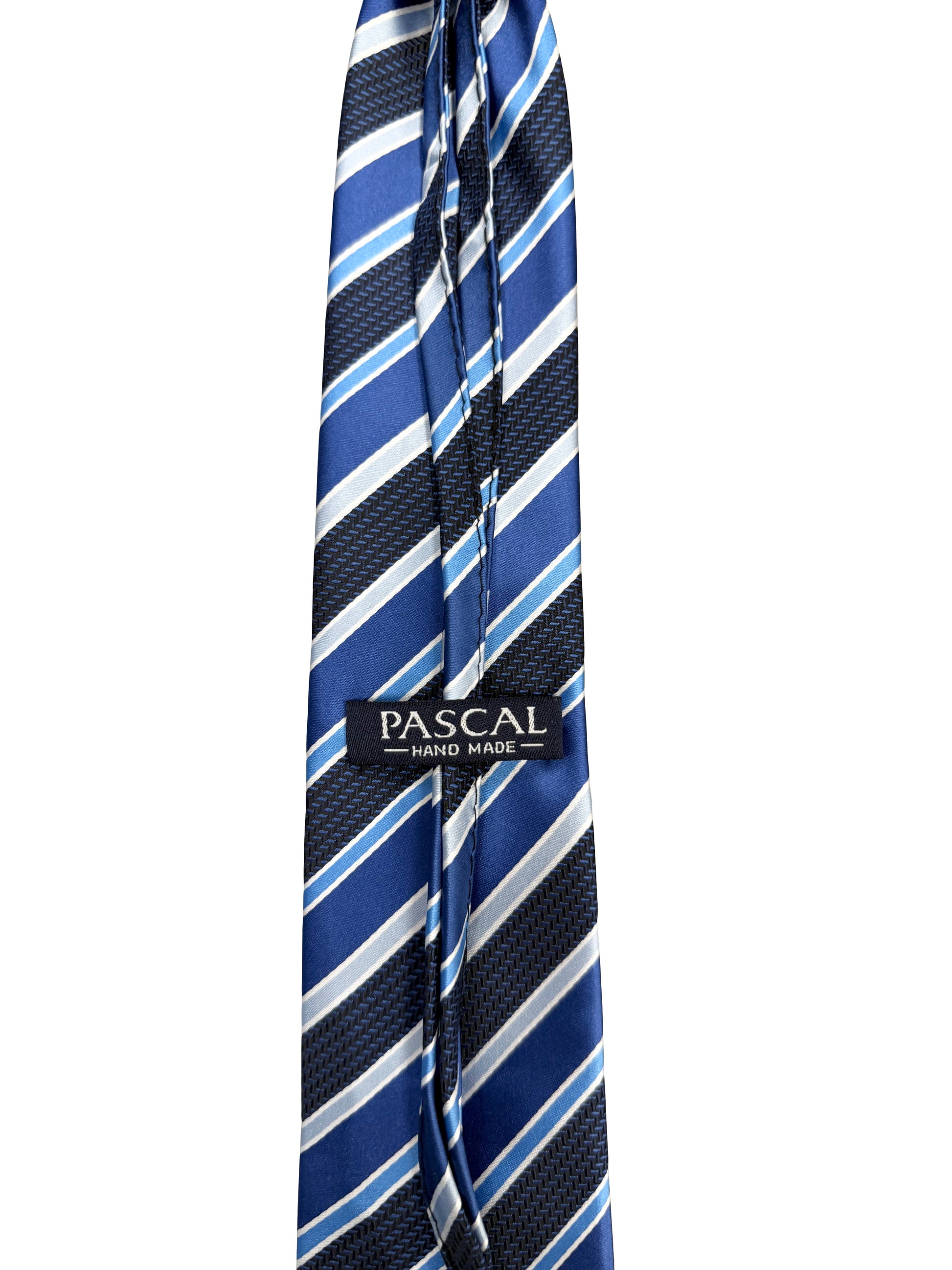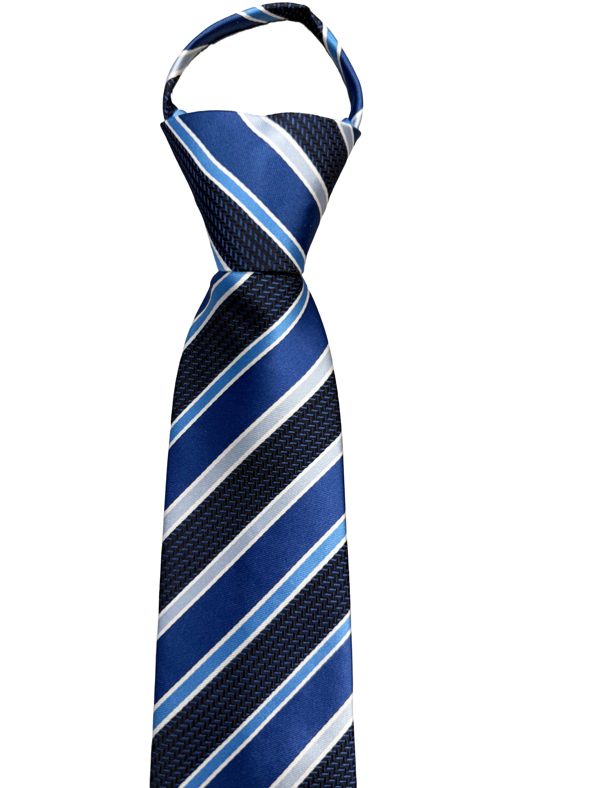 Pascal ferdigknyttet slips med en enkel justeringsmekanisme. Justeres ved å klemme på begge sider av knuten og dra i båndet.