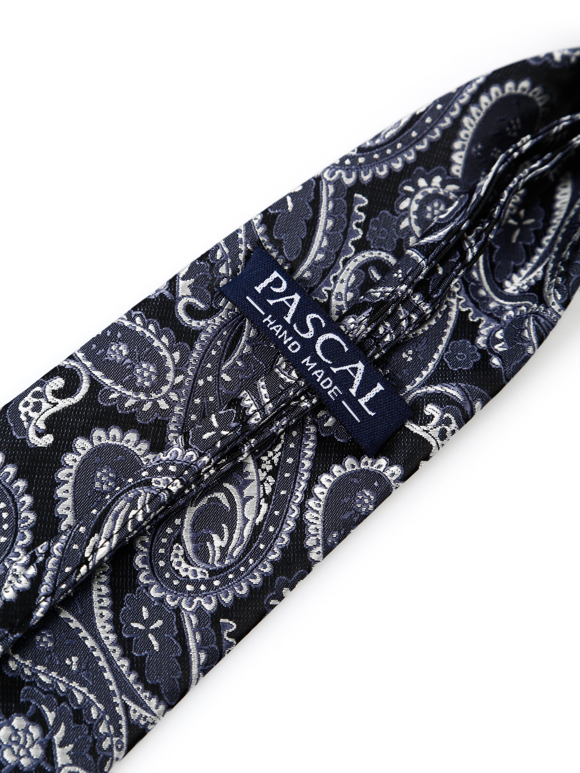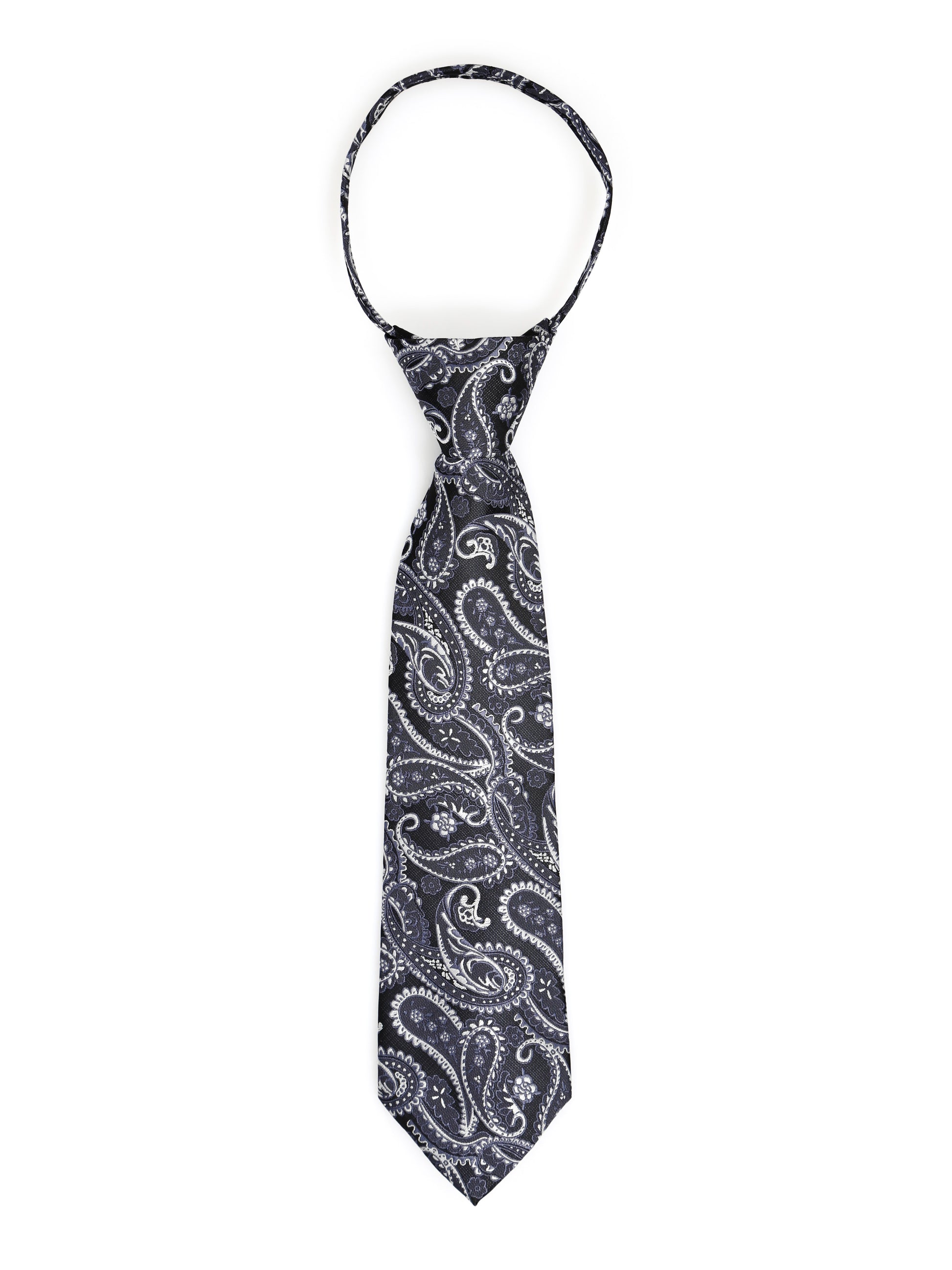 Pascal ferdigknyttet slips med en enkel justeringsmekanisme. Justeres ved å klemme på begge sider av knuten og dra i båndet.