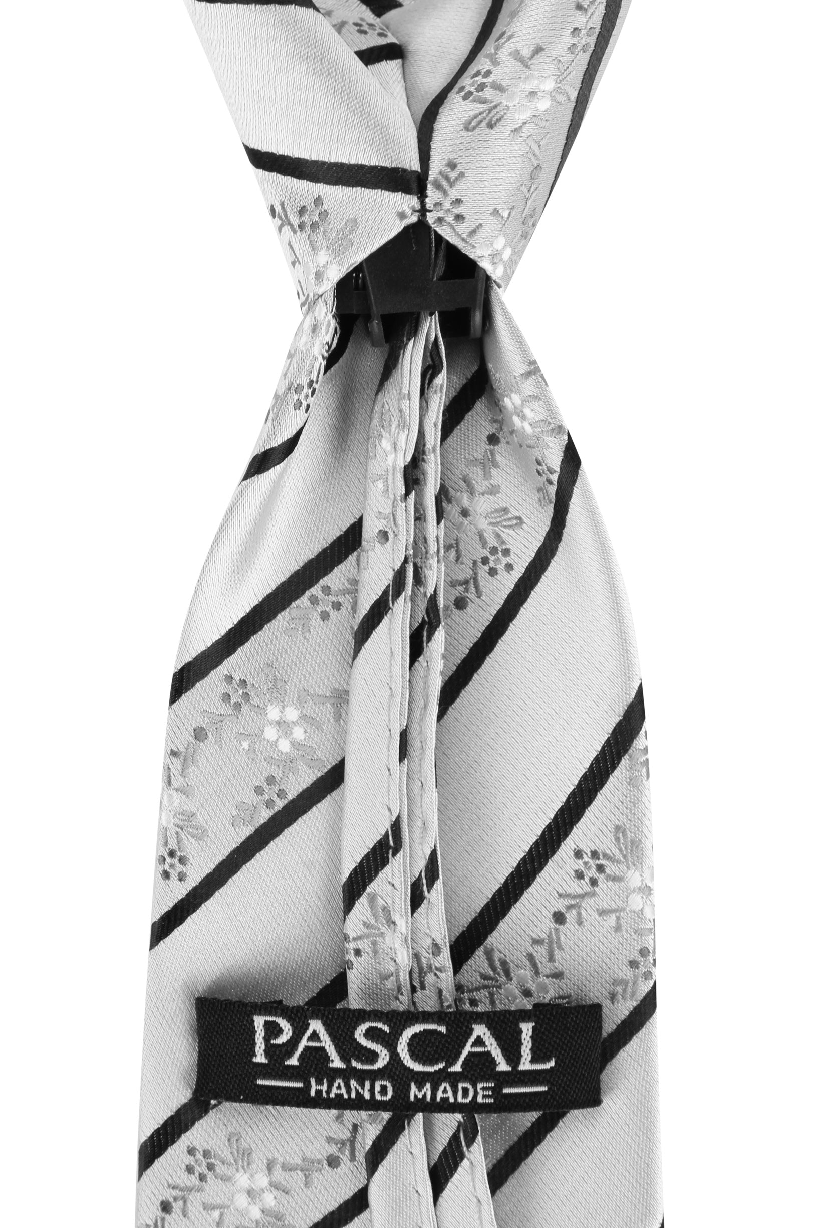 Pascal ferdigknyttet slips med en enkel justeringsmekanisme. Justeres ved å klemme på begge sider av knuten og dra i båndet.