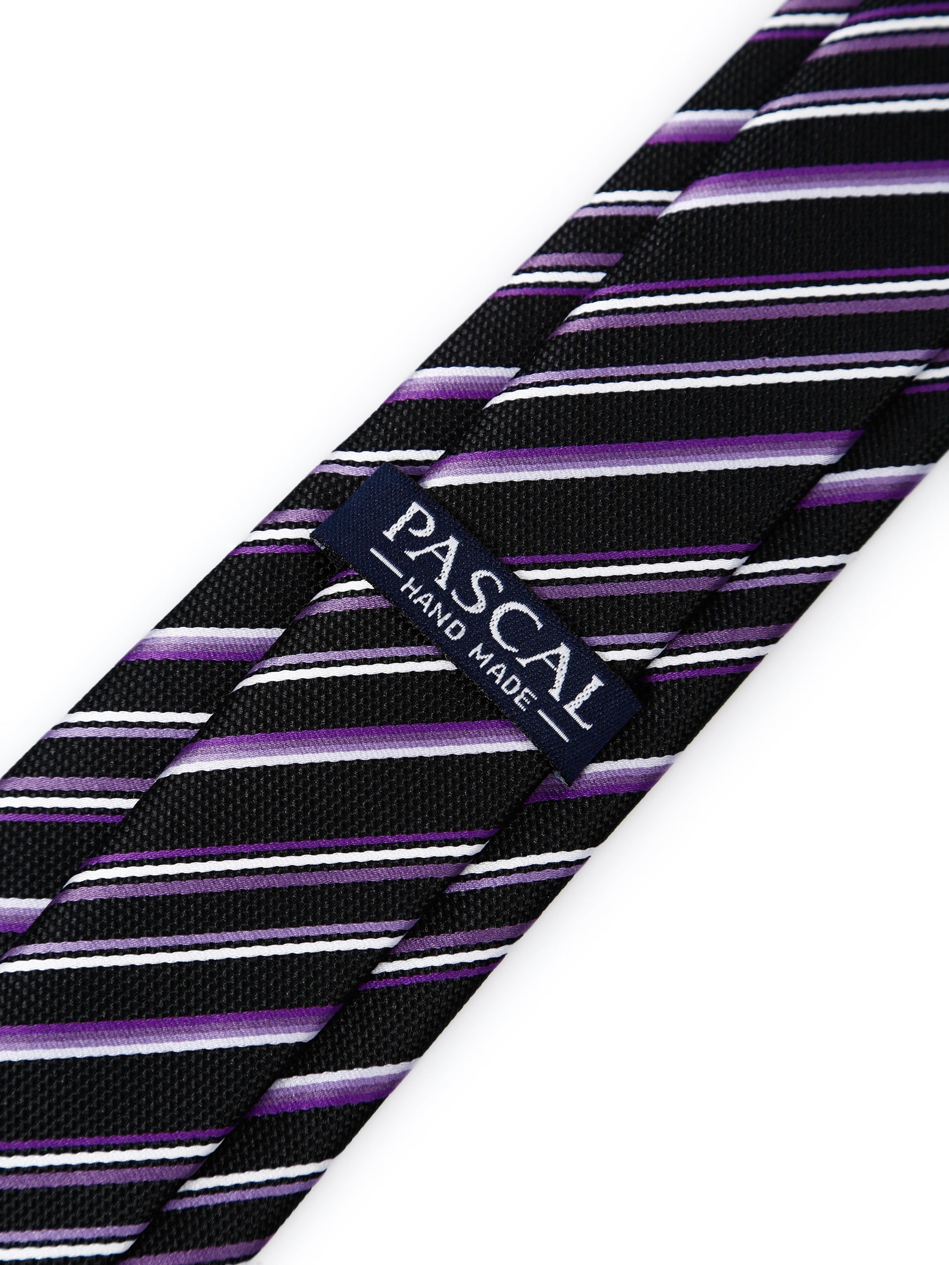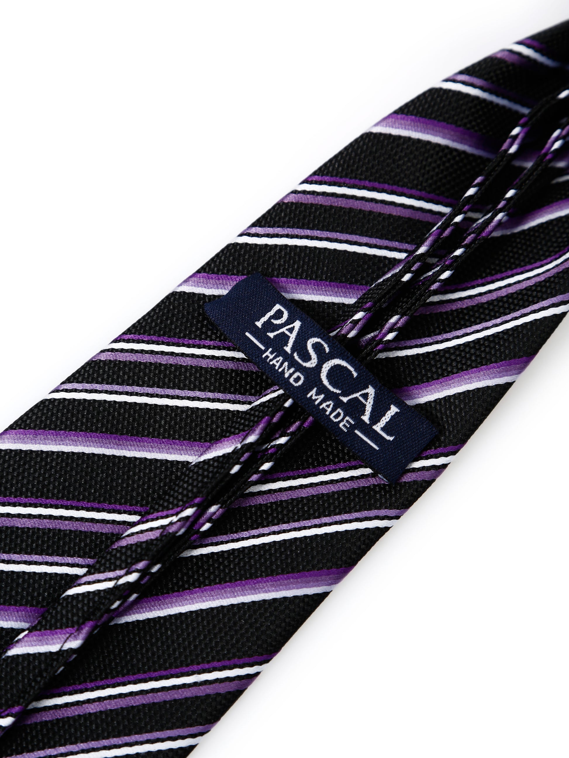 Pascal ferdigknyttet slips med en enkel justeringsmekanisme. Justeres ved å klemme på begge sider av knuten og dra i båndet.