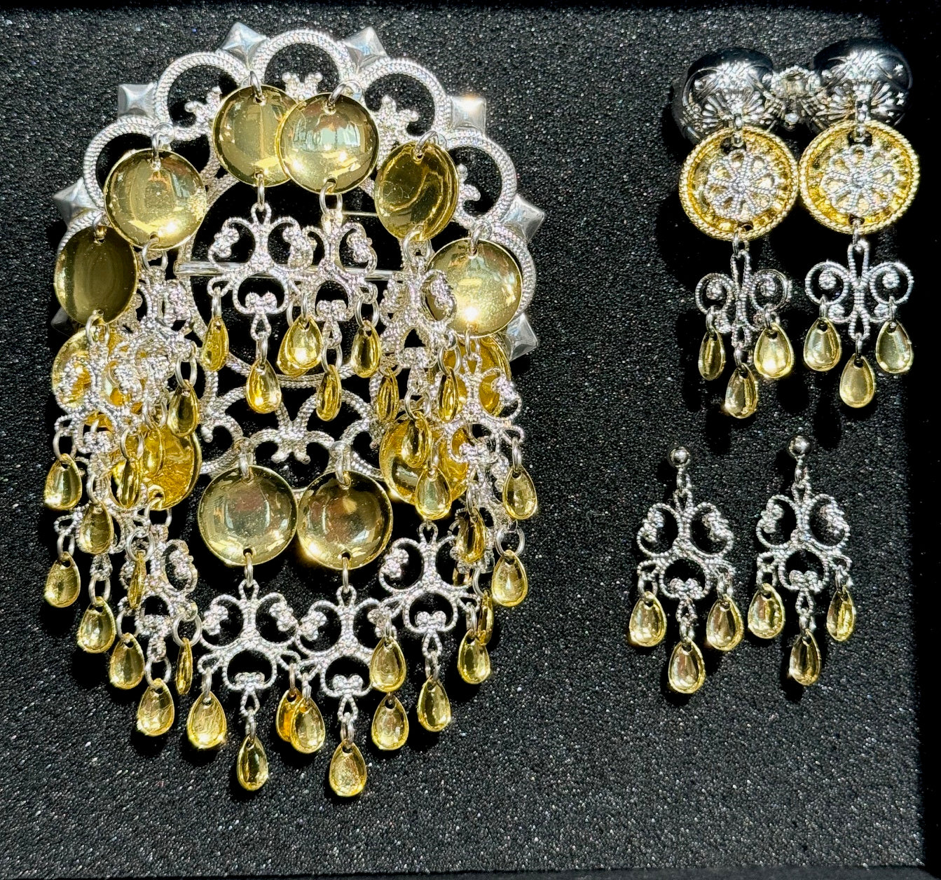 Pakken inneholder brystsølje, halssølje og øredobber.