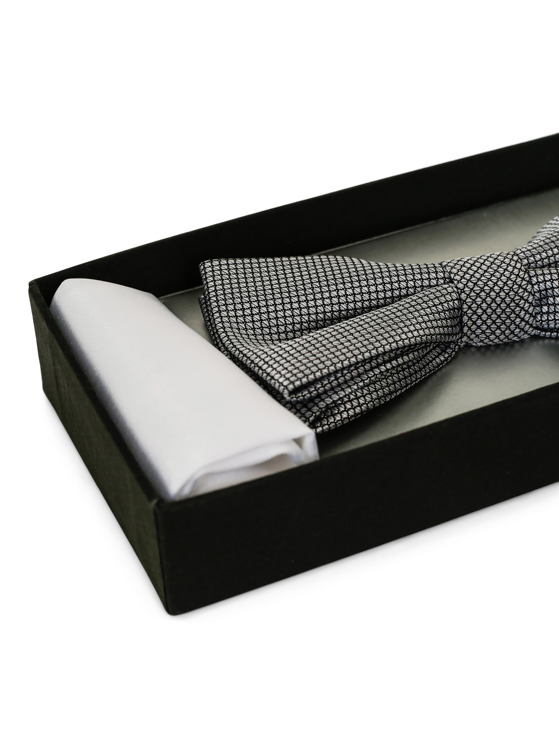 Det følger også med et lommetørkle som passer til tversoversløyfen.