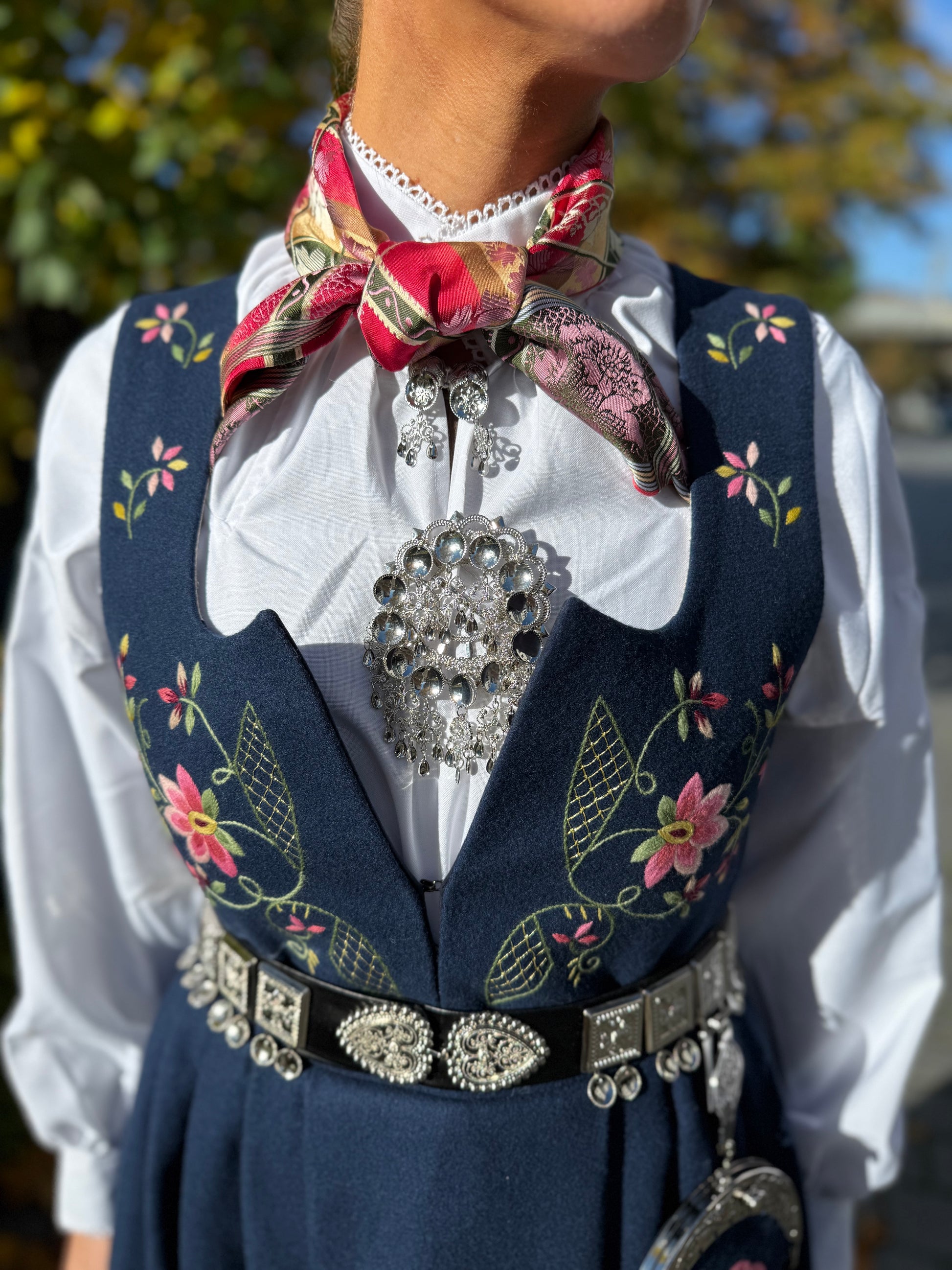 Silkeskjerf brukes til bunader og festdrakter over hele landet, men passer like godt som en "fargeklatt" for antrekk i hverdagen.