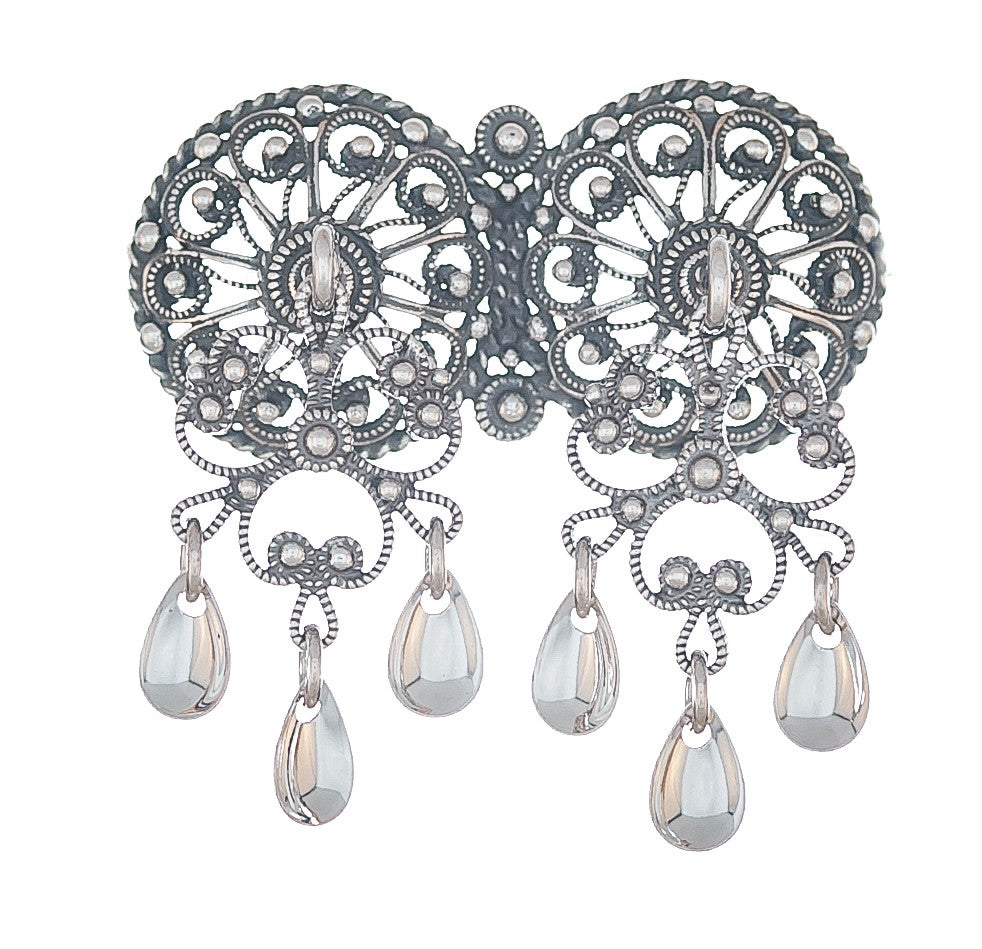Flott halssølje i oksidert sølv. Pen og stilren sølje med dråpeheng. Denne passer fint til de fleste bunader og våre egne festdrakter.