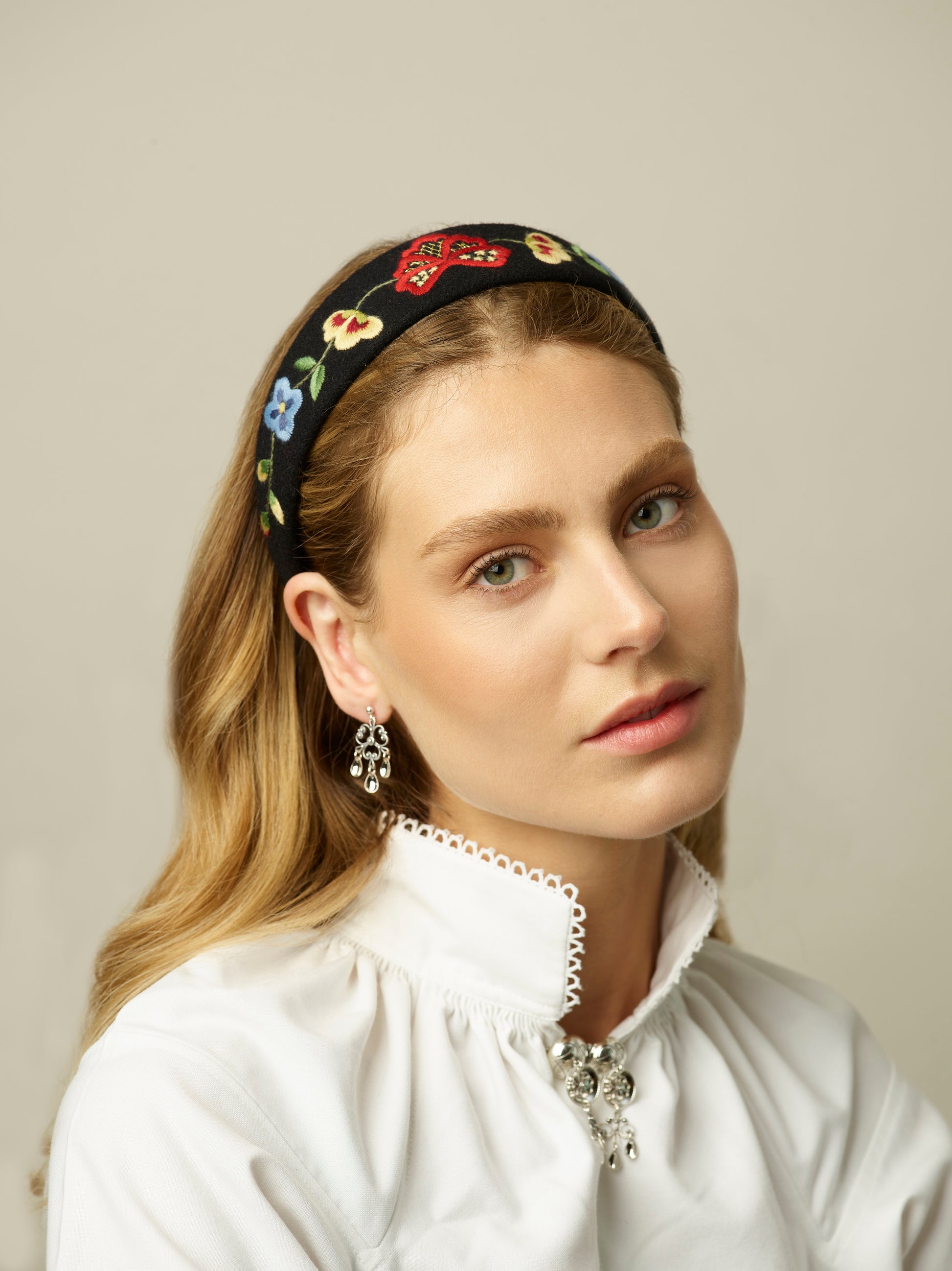 Flott halssølje i oksidert sølv. Pen og stilren sølje med dråpeheng. Denne passer fint til de fleste bunader og festdrakter.