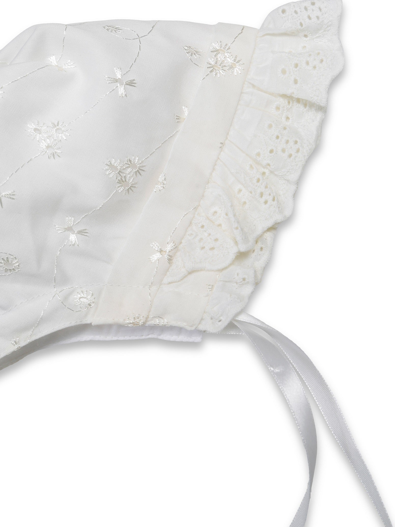 Dåpsluen har søt blondekant foran. Farge: OFFWHITE