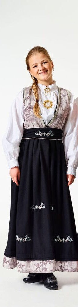 Nydelig grå festdrakt / bunad fra norske Pascal med matchende bunadshårbøyle. Pakketilbud!