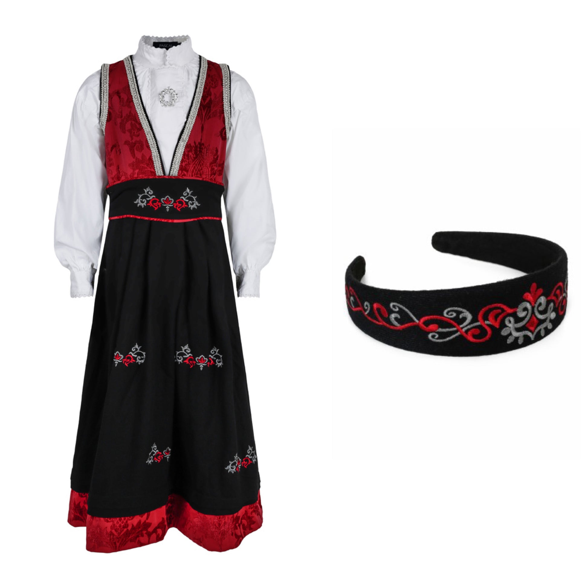 Pascal festdrakt med bunadshårbøyle rød