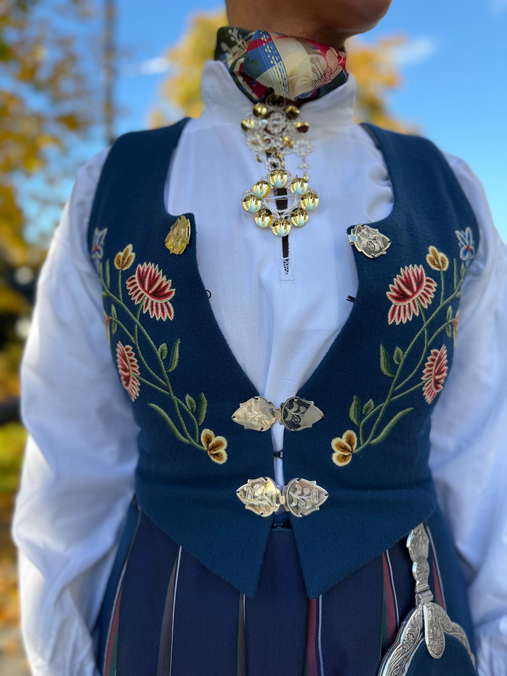 Bunadskjorte i lin med broderier er inkludert i prisen.