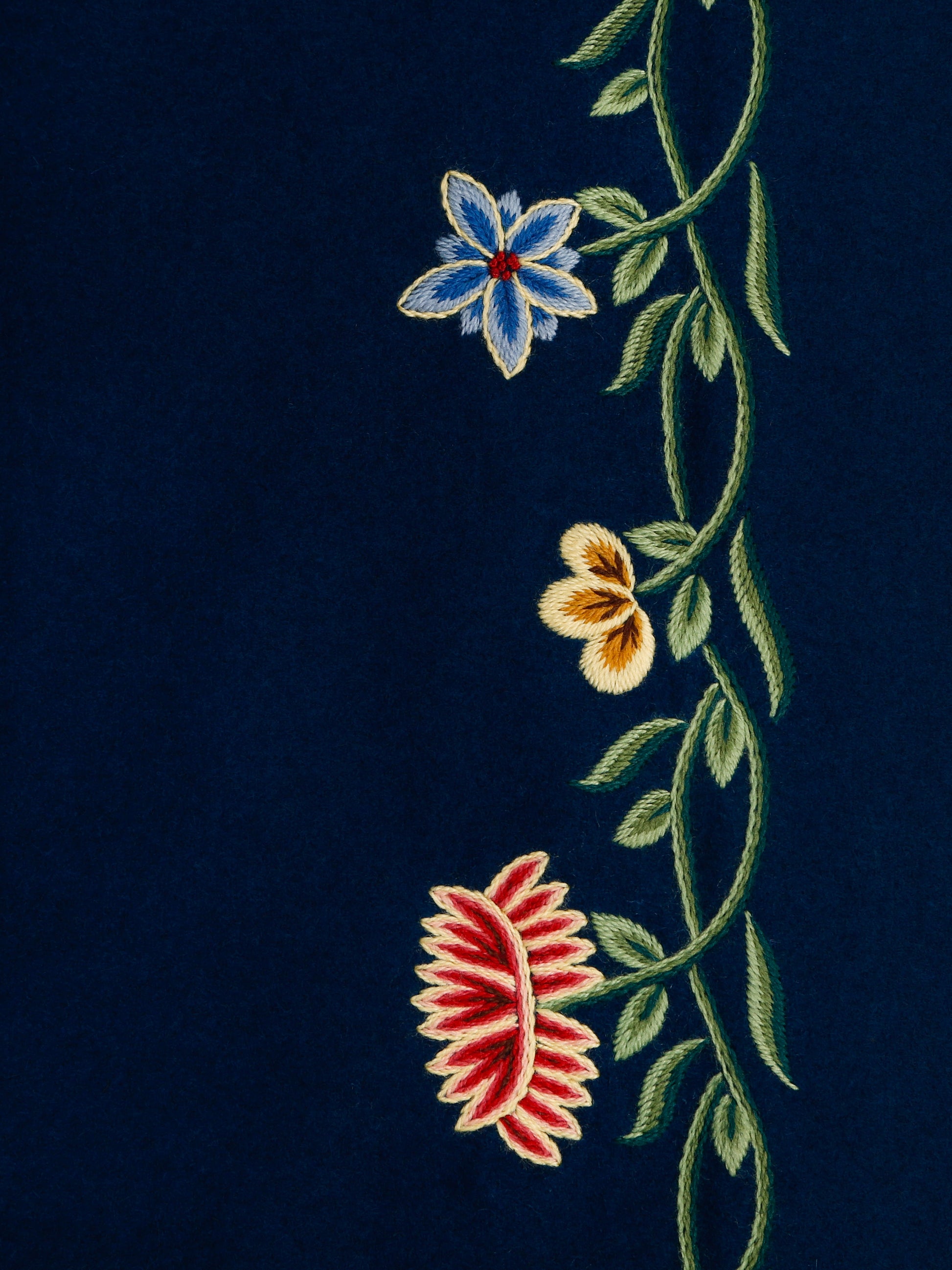 - Livet er i samme kvalitet og farge som stakken. Fremstykket og ryggen er brodert.