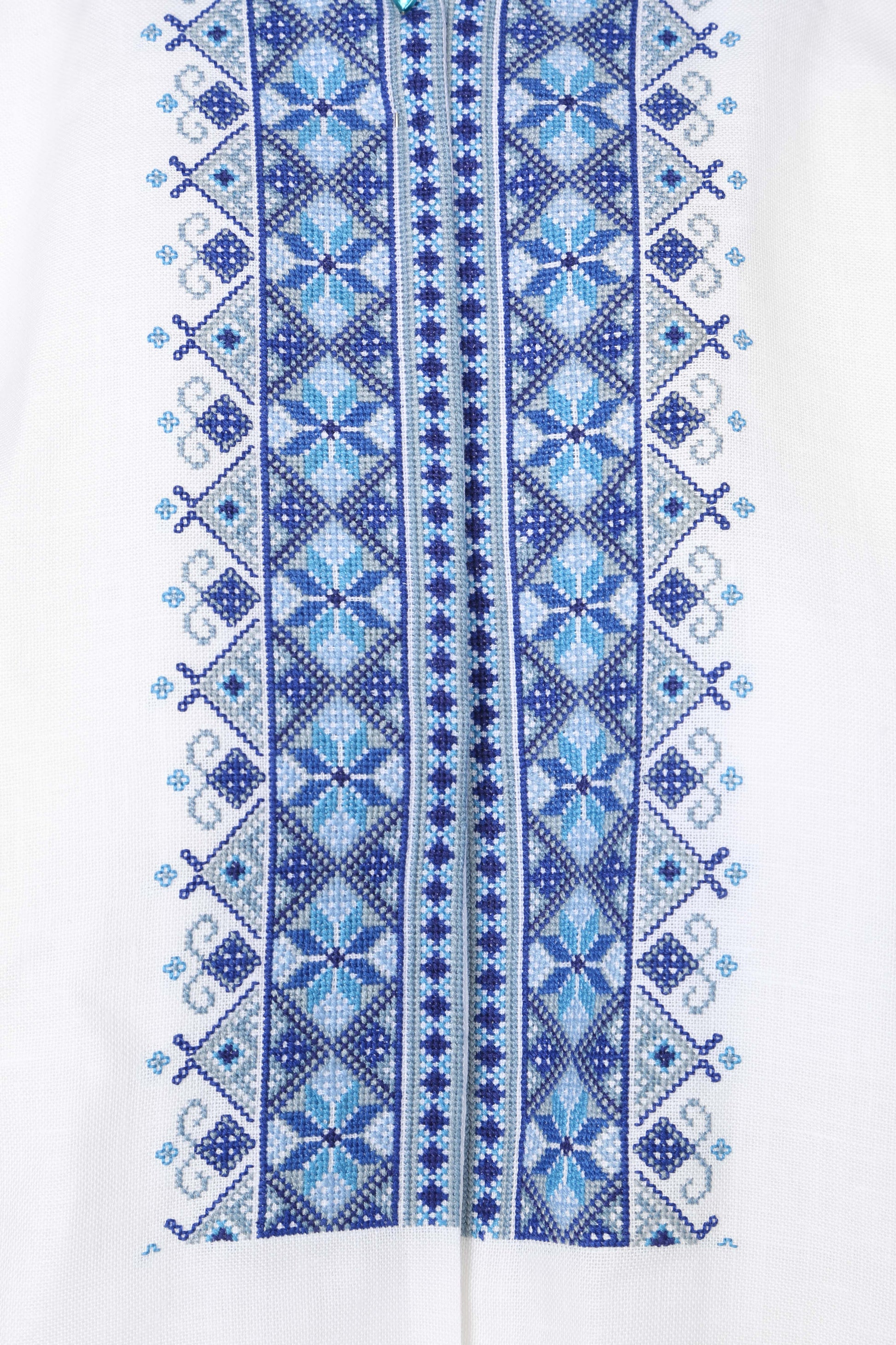 Bunadskjorten er i lin med korssting broderier i vakre fargekombinasjoner.