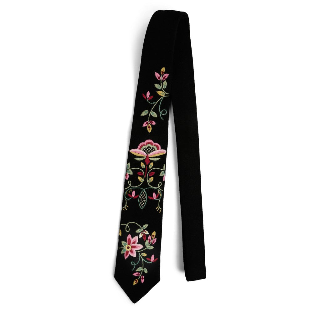 Nydelig håndbrodert bunadslips i ull. Broderiene er håndbrodert med mønster fra Lundebybunaden.